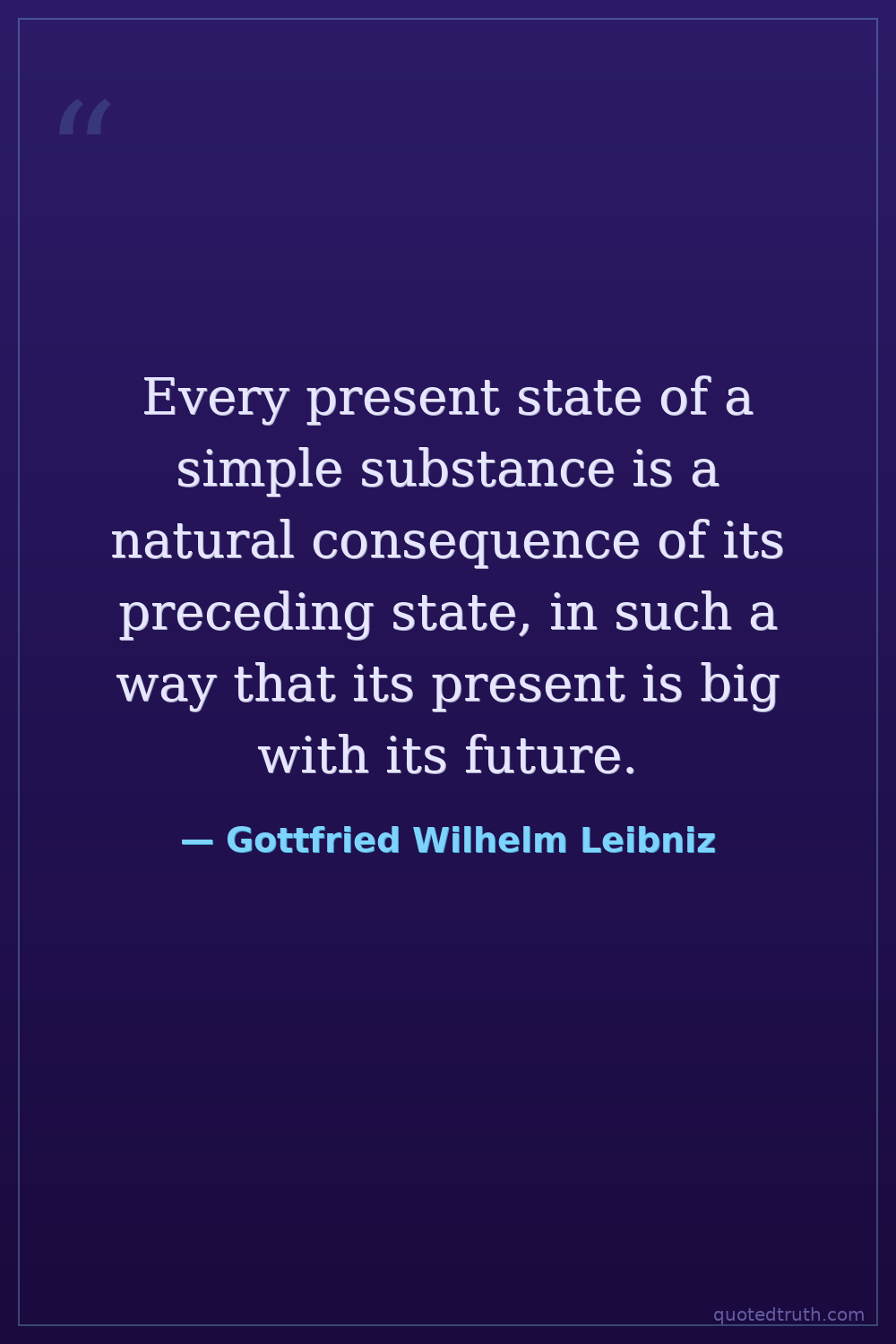 Every present state of a simple substance is a natural consequence of its preceding state, in such a way that its present is big with its future.