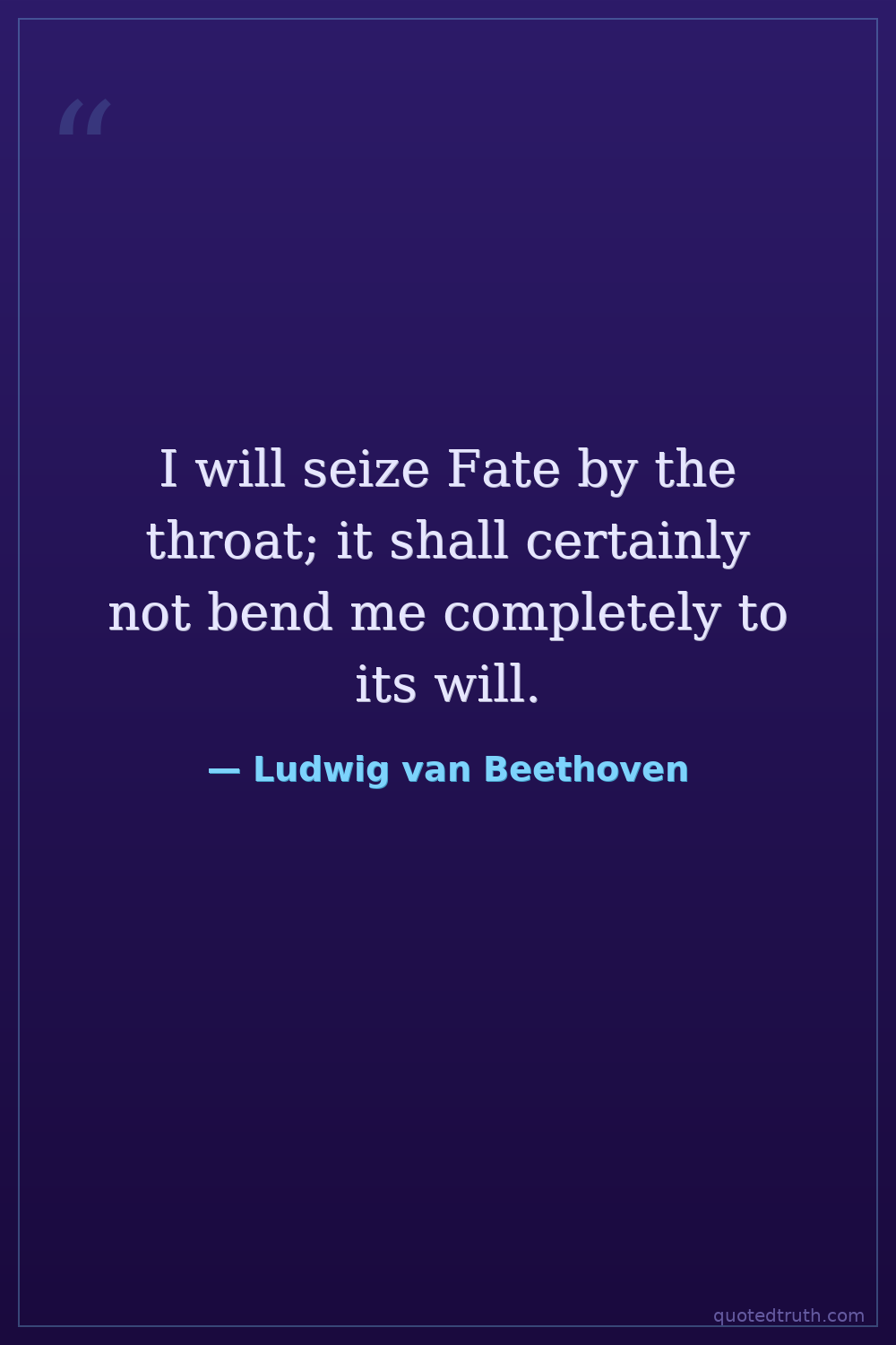 I will seize Fate by the throat; it shall certainly not bend me completely to its will.