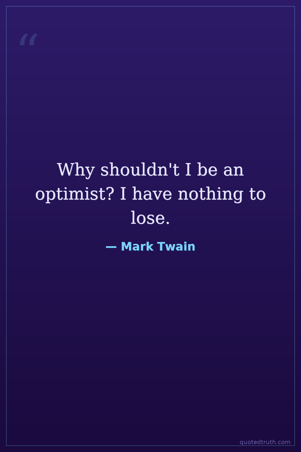 Why shouldn't I be an optimist? I have nothing to lose.
