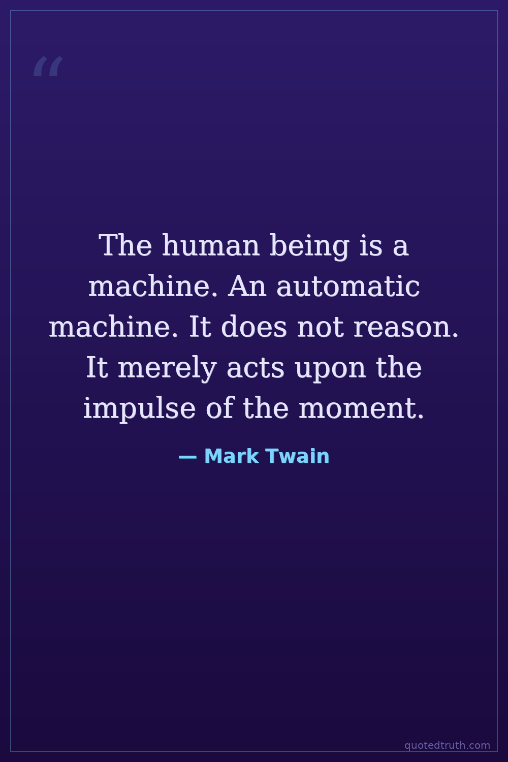 The human being is a machine. An automatic machine. It does not reason. It merely acts upon the impulse of the moment.