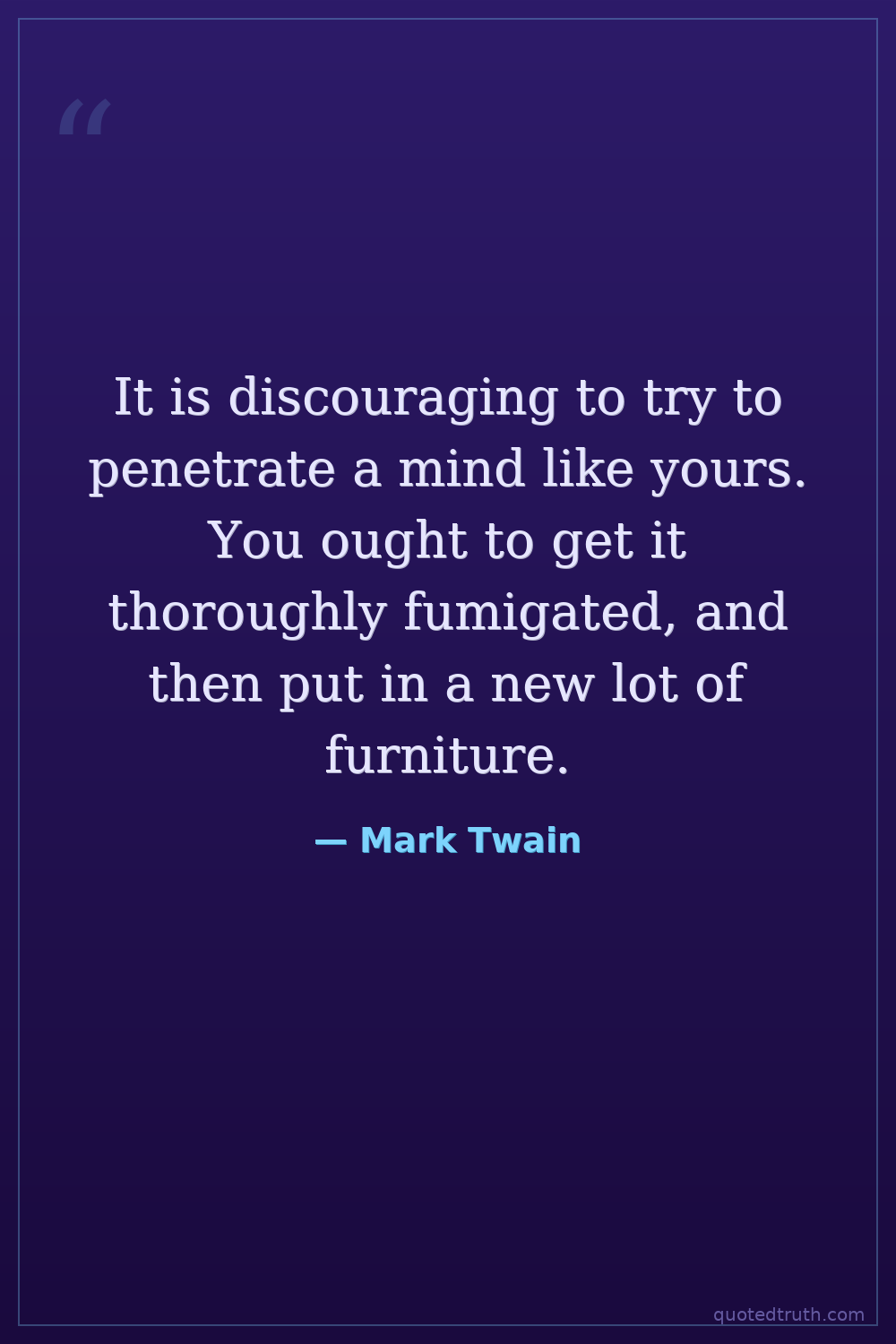 It is discouraging to try to penetrate a mind like yours. You ought to get it thoroughly fumigated, and then put in a new lot of furniture.