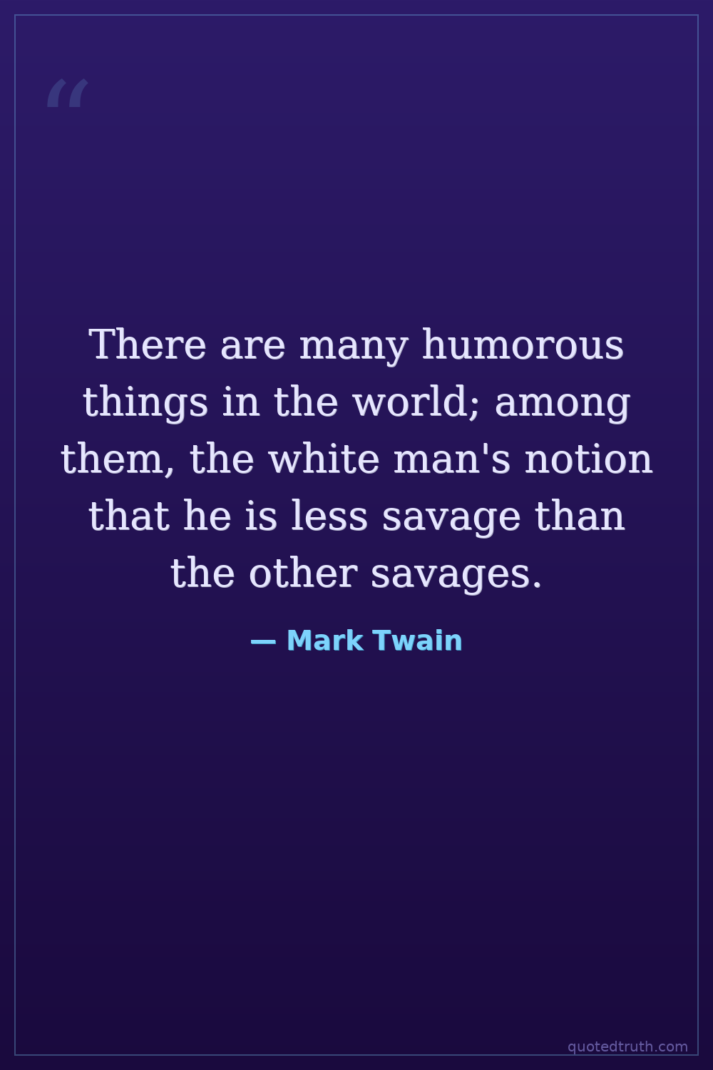There are many humorous things in the world; among them, the white man's notion that he is less savage than the other savages.