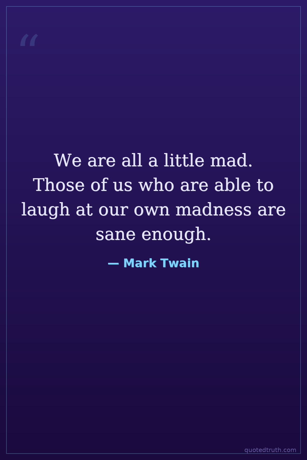 We are all a little mad. Those of us who are able to laugh at our own madness are sane enough.