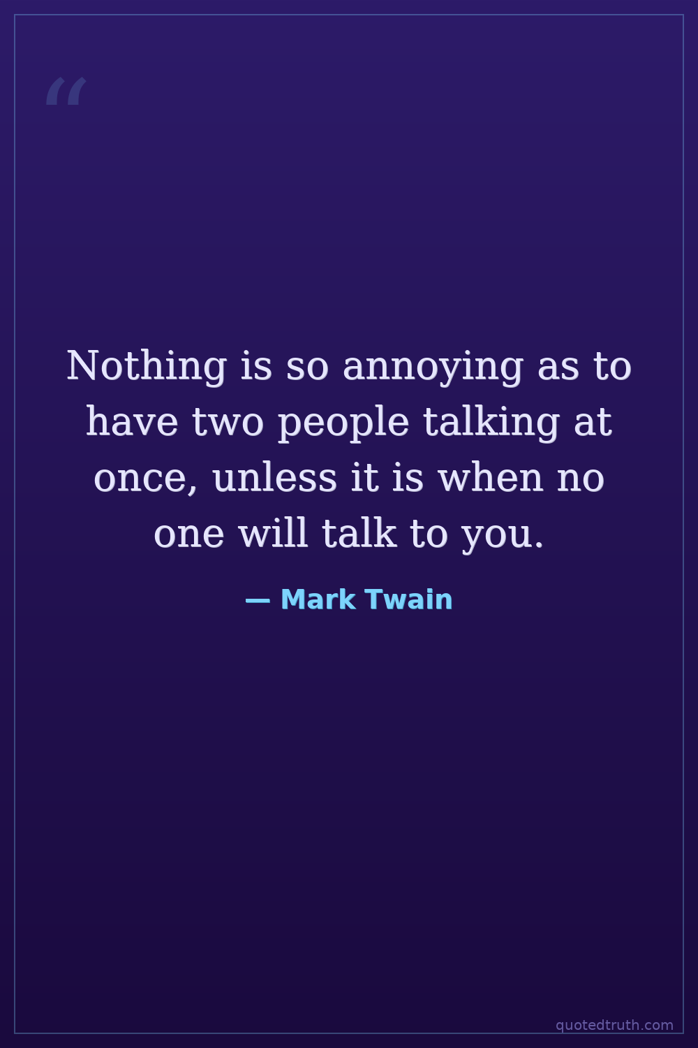 Nothing is so annoying as to have two people talking at once, unless it is when no one will talk to you.