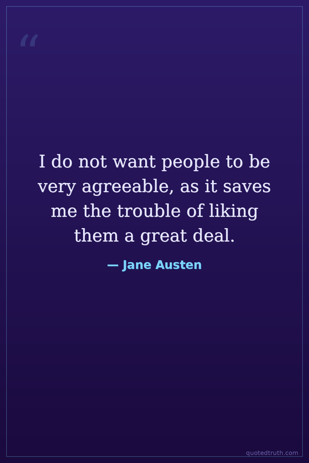 I do not want people to be very agreeable, as it saves me the trouble of liking them a great deal.