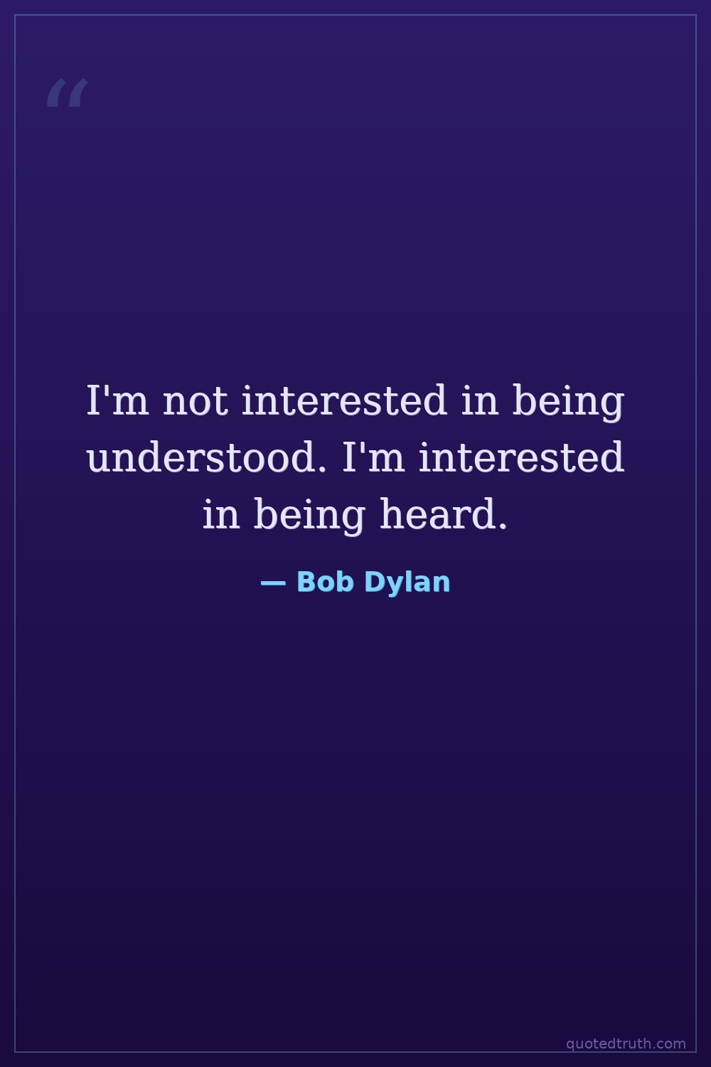 I'm not interested in being understood. I'm interested in being heard.