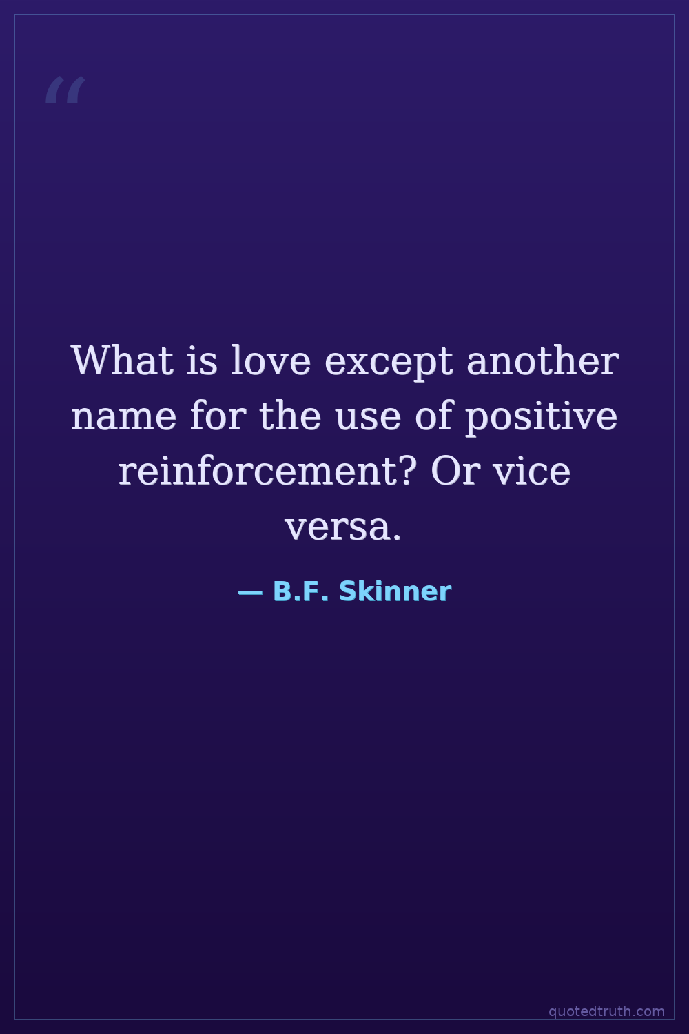 What is love except another name for the use of positive reinforcement? Or vice versa.