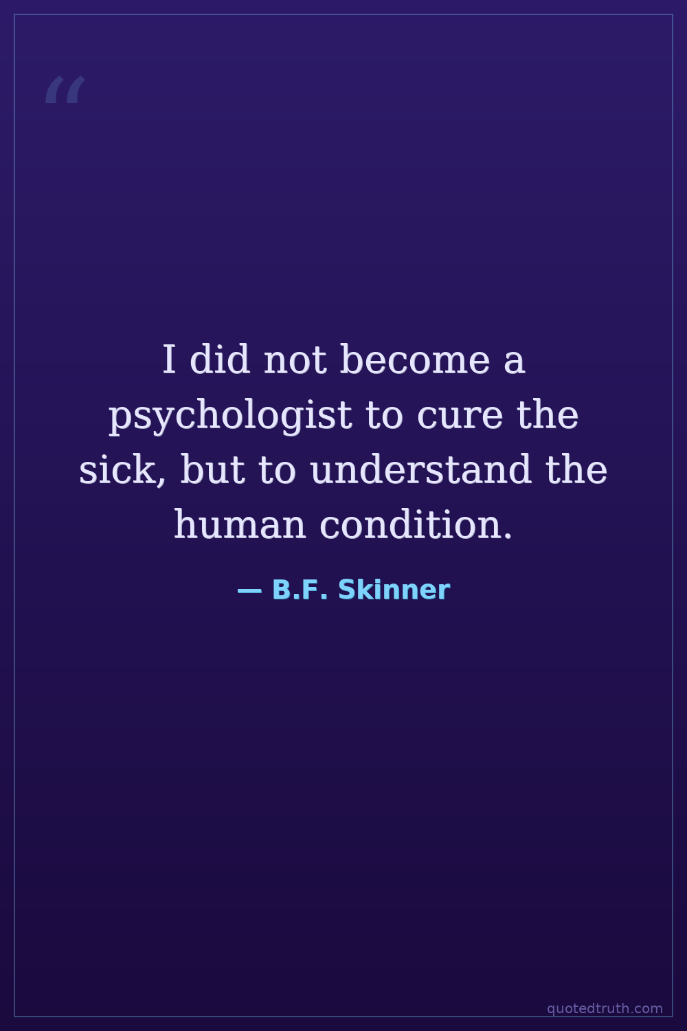 I did not become a psychologist to cure the sick, but to understand the human condition.