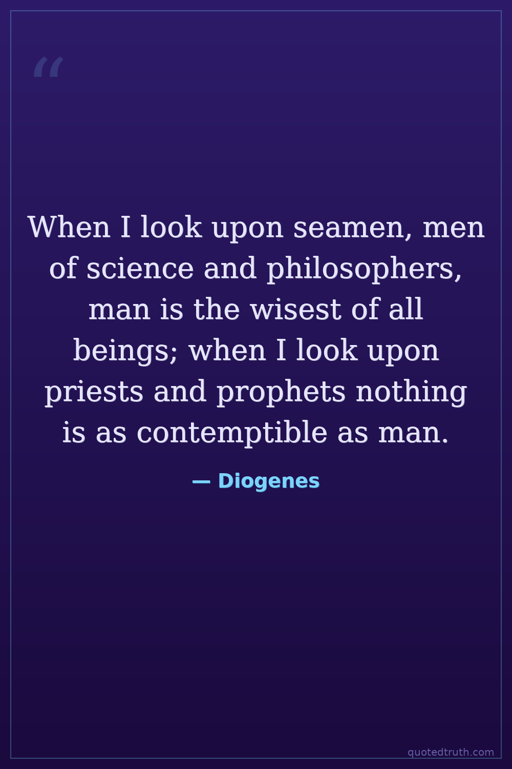 When I look upon seamen, men of science and philosophers, man is the wisest of all beings; when I look upon priests and prophets nothing is as contemptible as man.