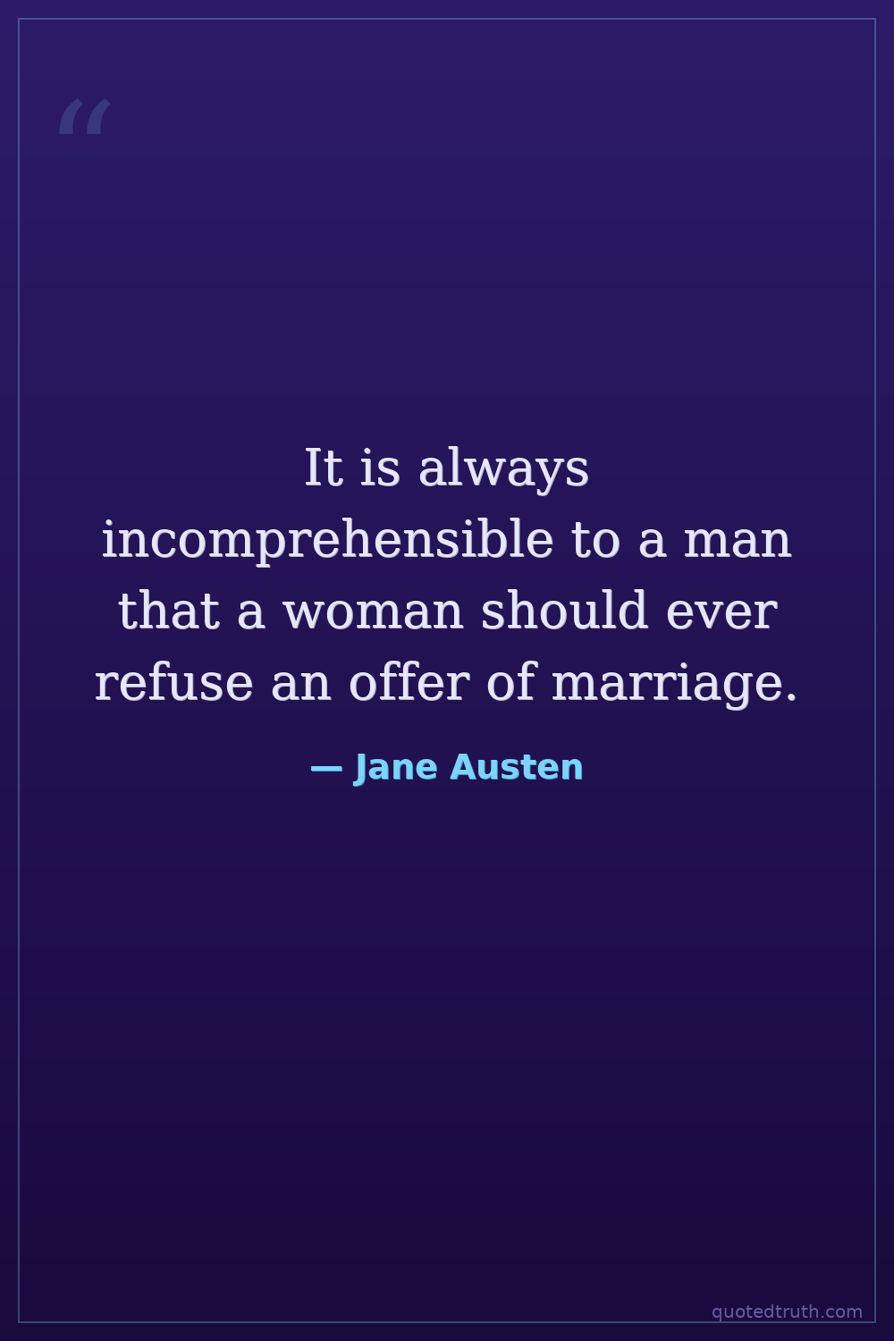 It is always incomprehensible to a man that a woman should ever refuse an offer of marriage.