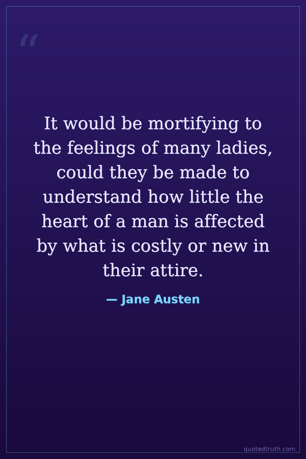 It would be mortifying to the feelings of many ladies, could they be made to understand how little the heart of a man is affected by what is costly or new in their attire.