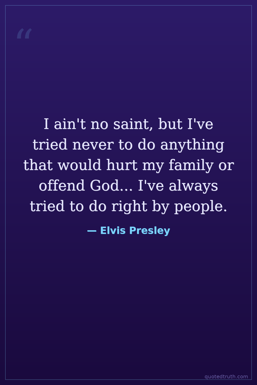 I ain't no saint, but I've tried never to do anything that would hurt my family or offend God... I've always tried to do right by people.