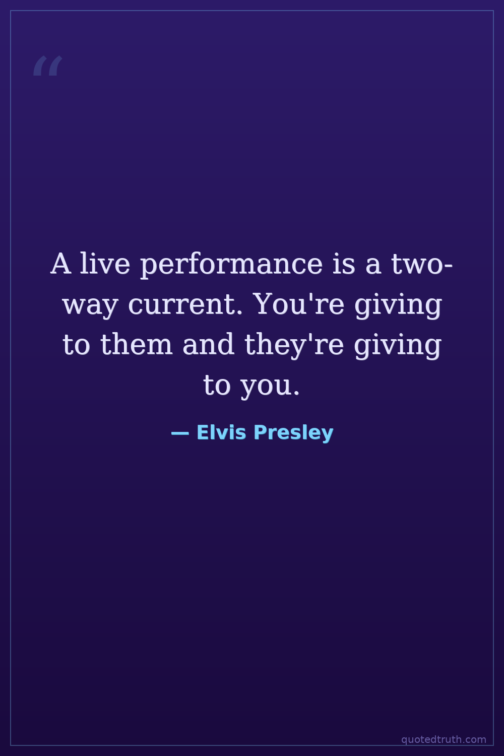 A live performance is a two-way current. You're giving to them and they're giving to you.