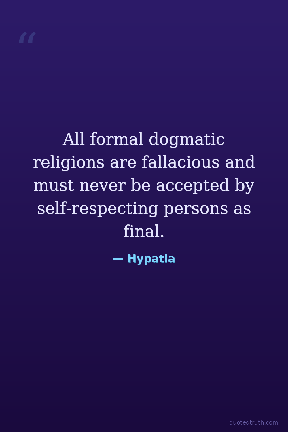All formal dogmatic religions are fallacious and must never be accepted by self-respecting persons as final.