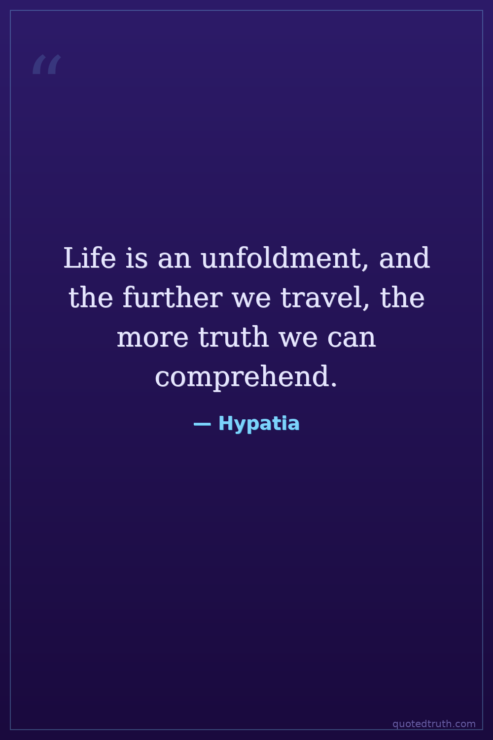 Life is an unfoldment, and the further we travel, the more truth we can comprehend.
