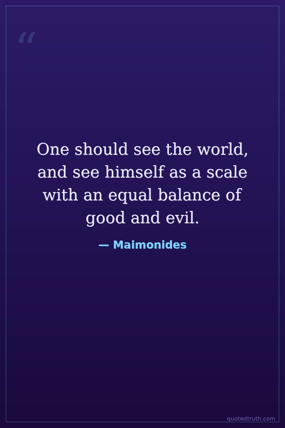 One should see the world, and see himself as a scale with an equal balance of good and evil.