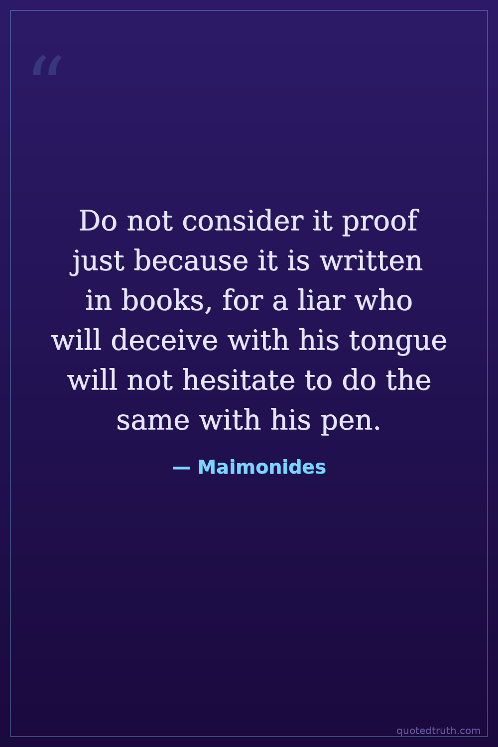 Do not consider it proof just because it is written in books, for a liar who will deceive with his tongue will not hesitate to do the same with his pen.