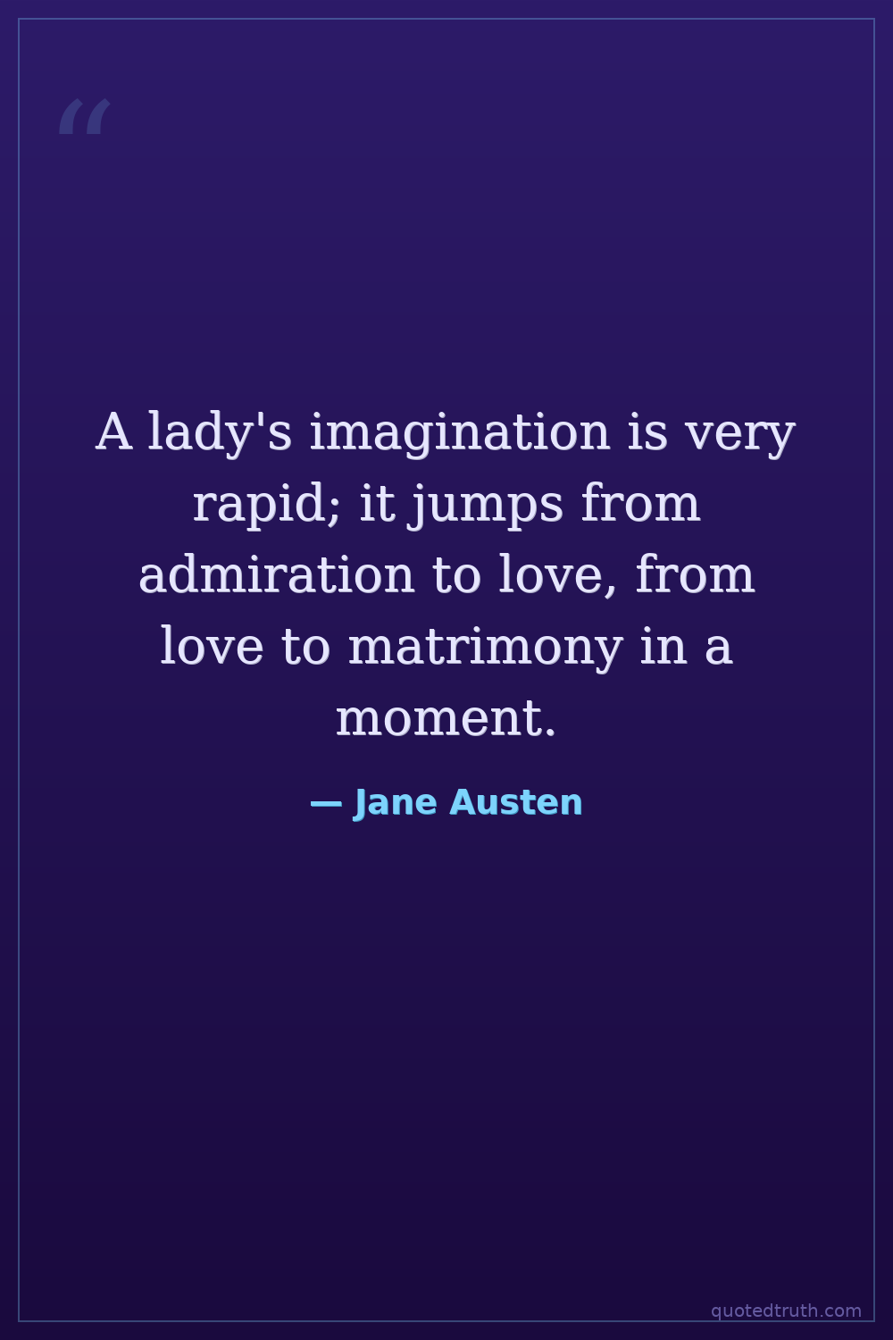 A lady's imagination is very rapid; it jumps from admiration to love, from love to matrimony in a moment.