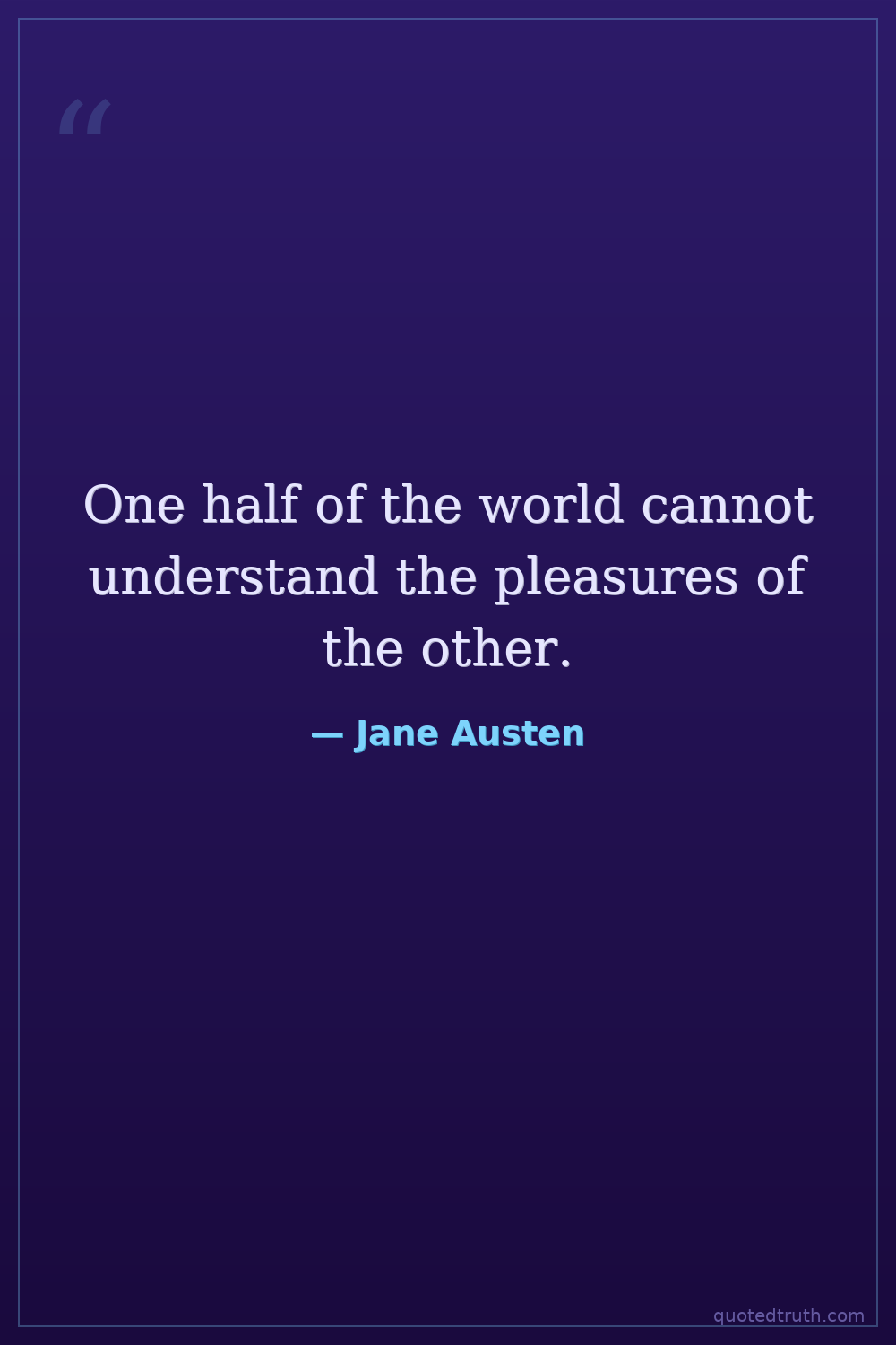 One half of the world cannot understand the pleasures of the other.