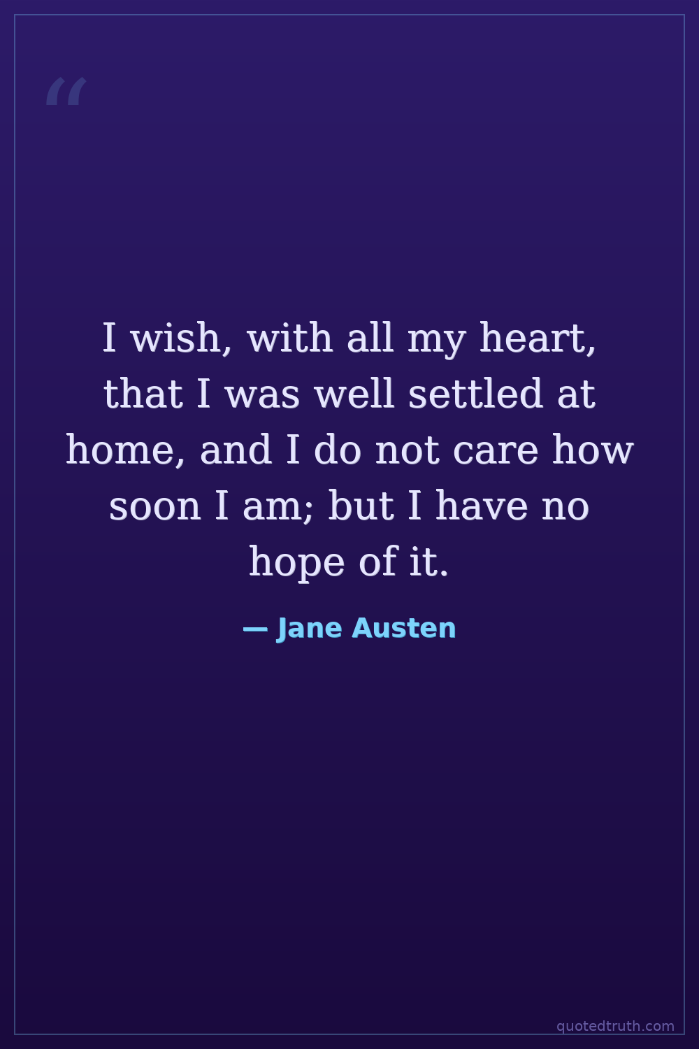 I wish, with all my heart, that I was well settled at home, and I do not care how soon I am; but I have no hope of it.