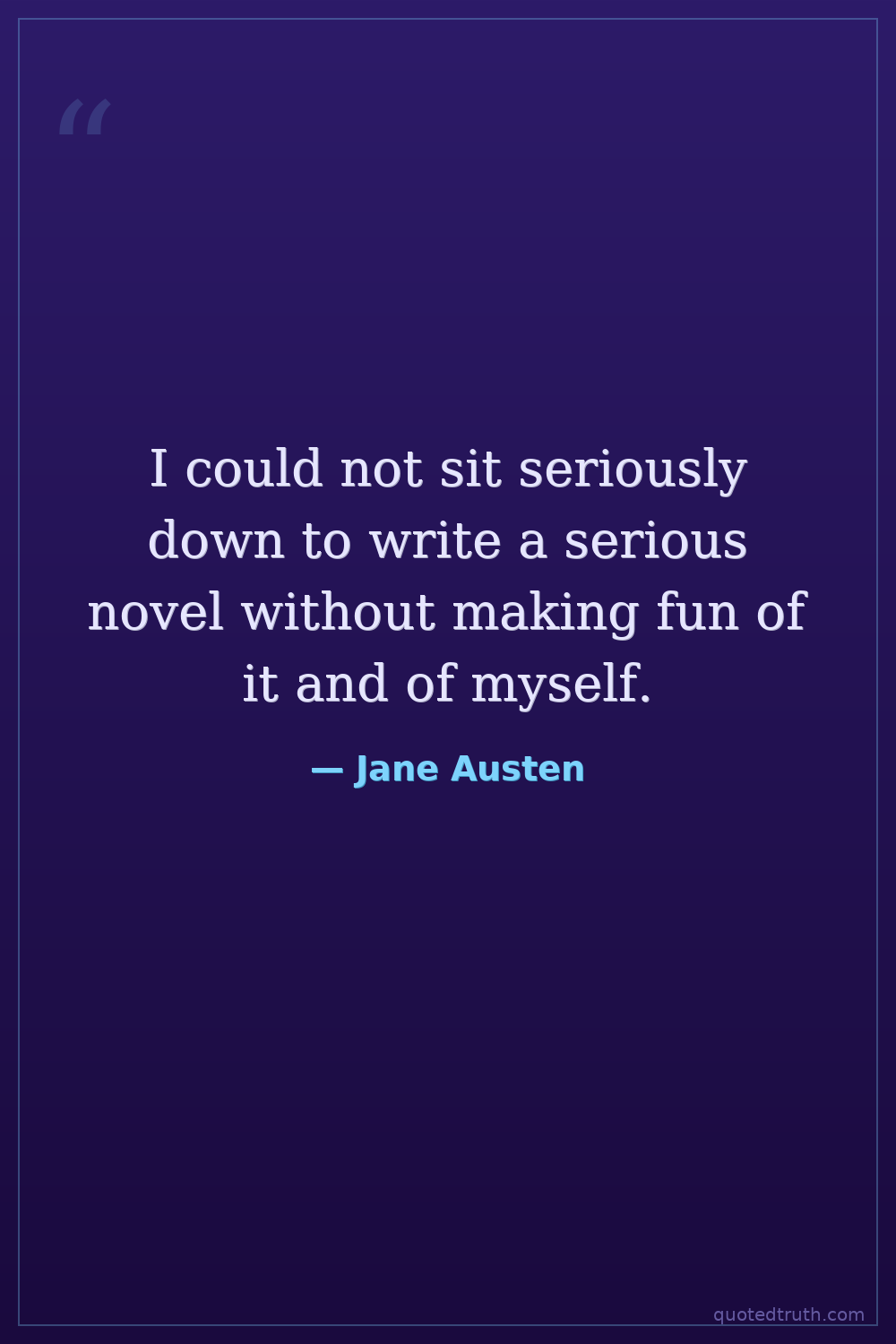 I could not sit seriously down to write a serious novel without making fun of it and of myself.