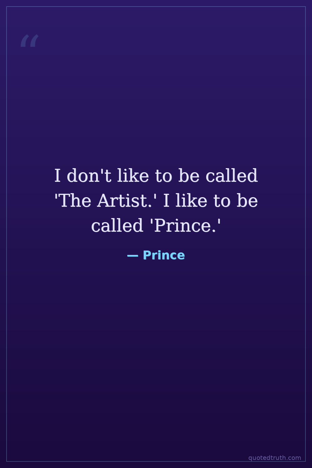 I don't like to be called 'The Artist.' I like to be called 'Prince.'