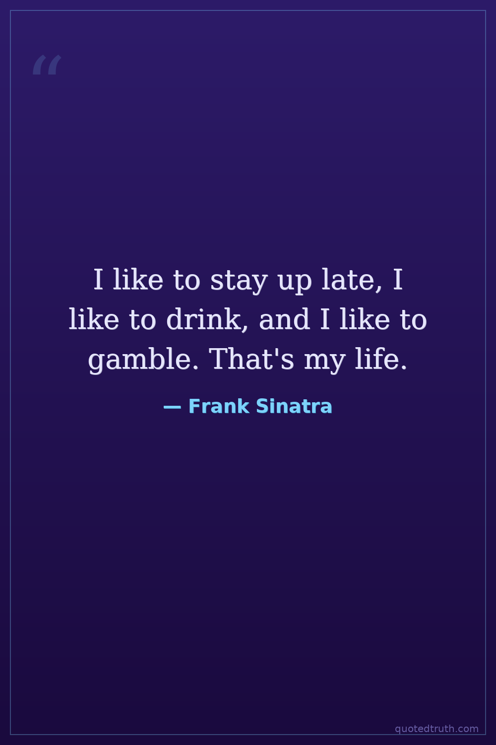 I like to stay up late, I like to drink, and I like to gamble. That's my life.