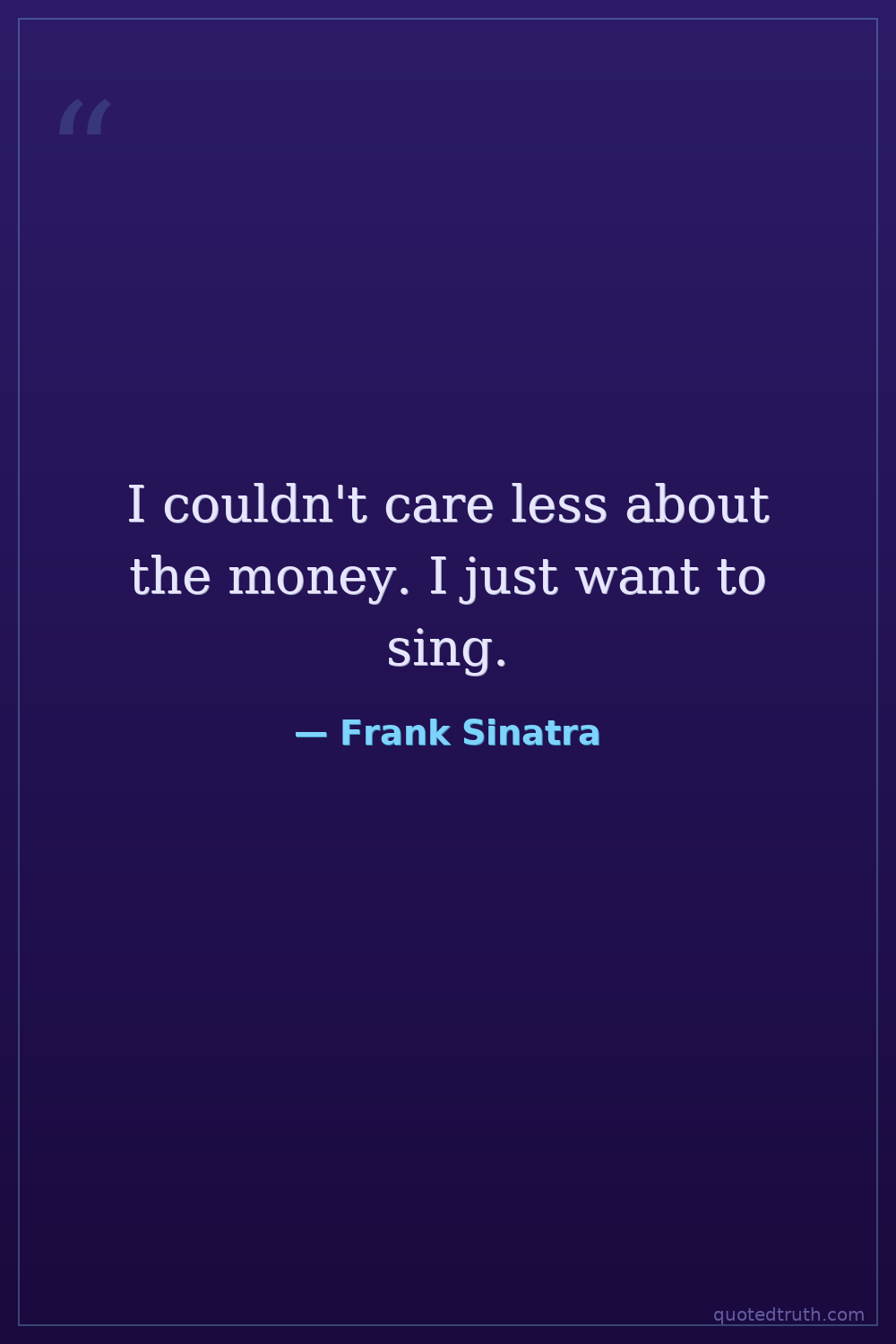I couldn't care less about the money. I just want to sing.