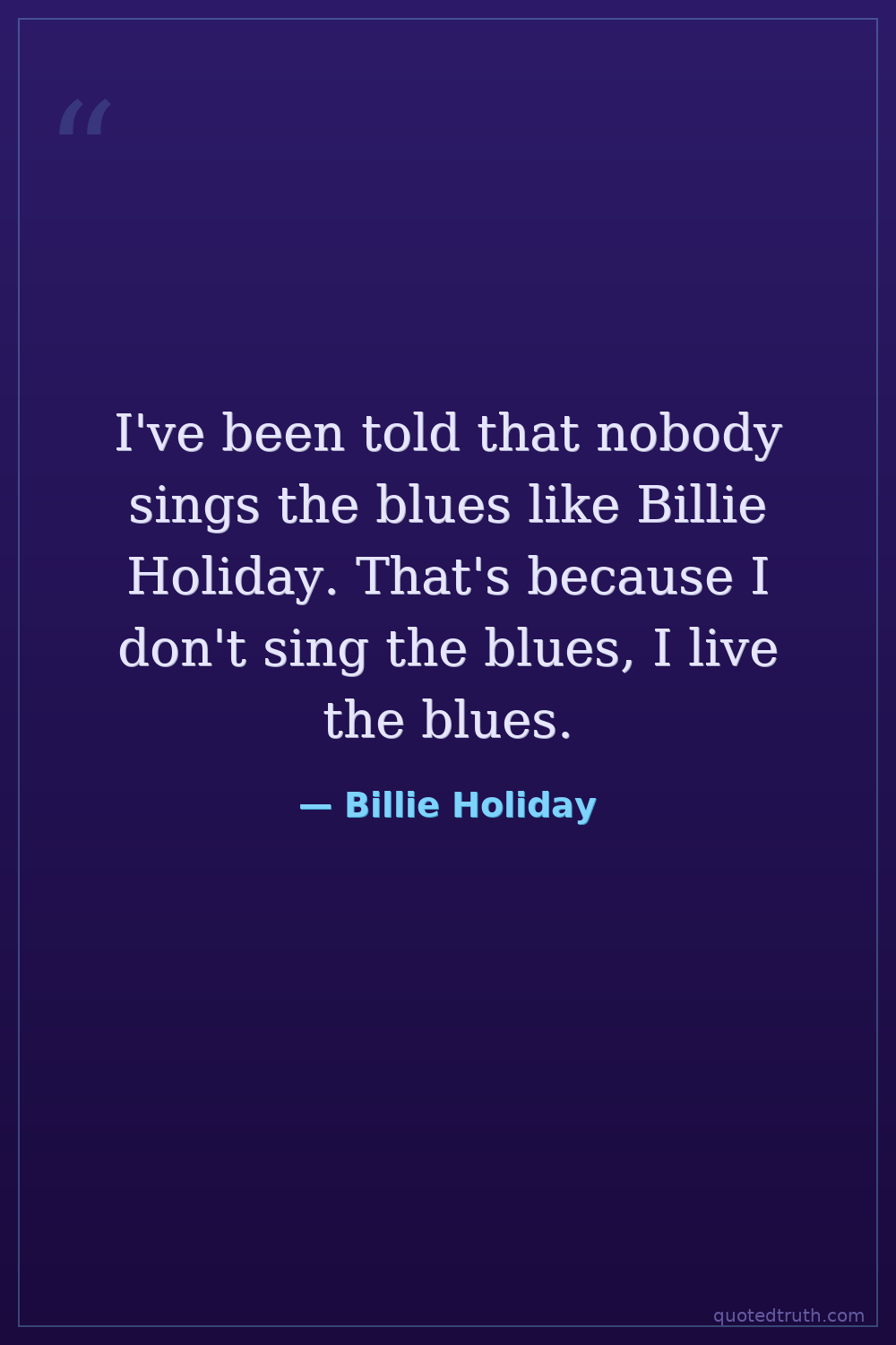 I've been told that nobody sings the blues like Billie Holiday. That's because I don't sing the blues, I live the blues.