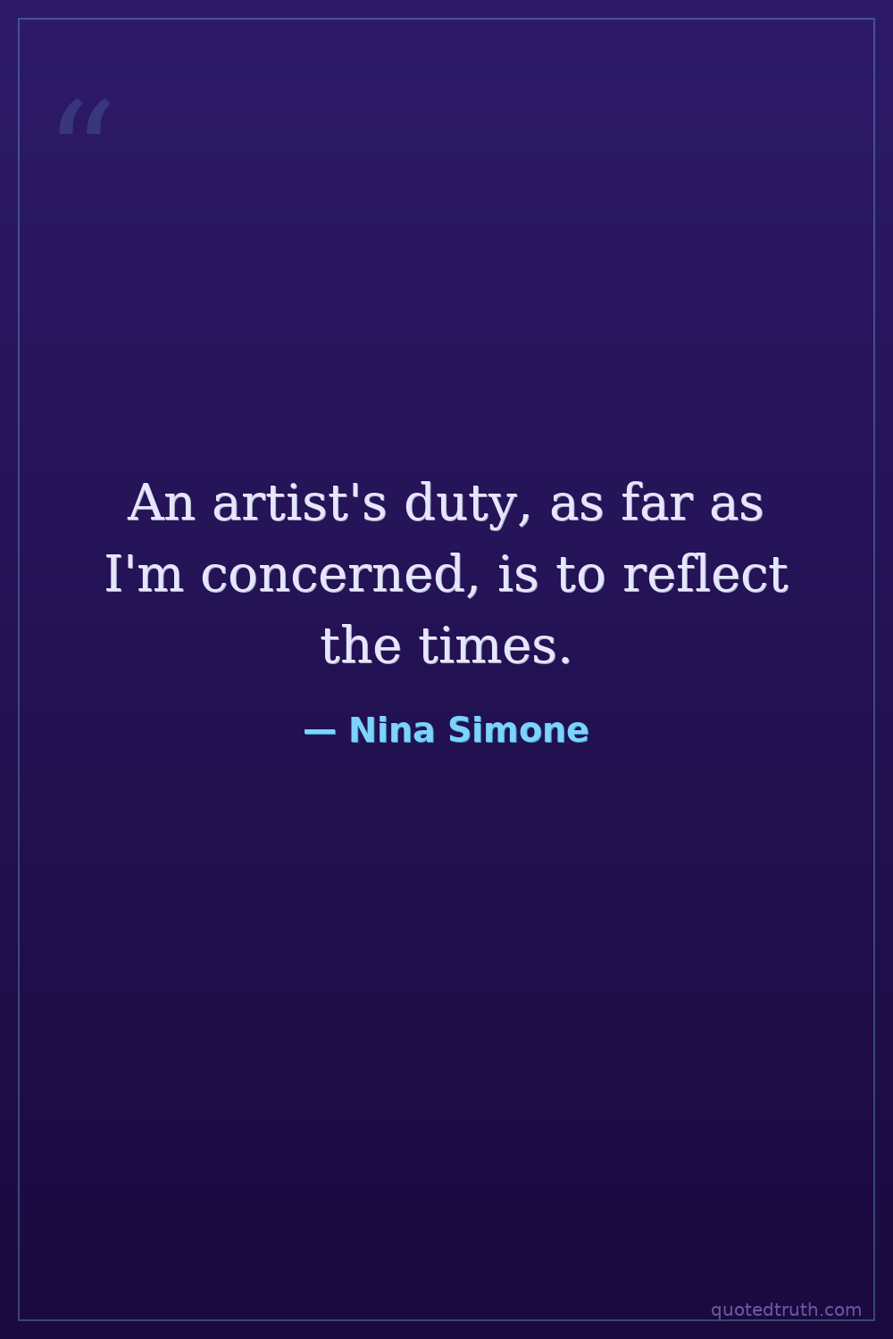 An artist's duty, as far as I'm concerned, is to reflect the times.