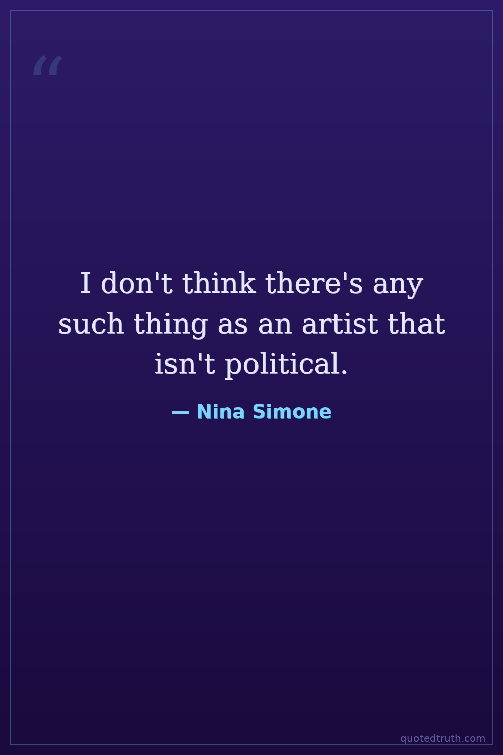 I don't think there's any such thing as an artist that isn't political.