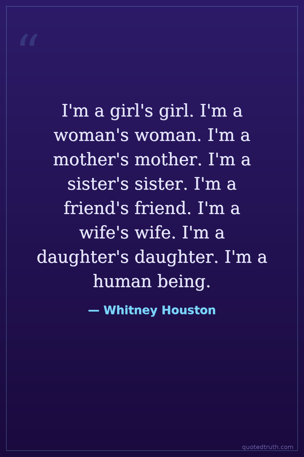I'm a girl's girl. I'm a woman's woman. I'm a mother's mother. I'm a sister's sister. I'm a friend's friend. I'm a wife's wife. I'm a daughter's daughter. I'm a human being.