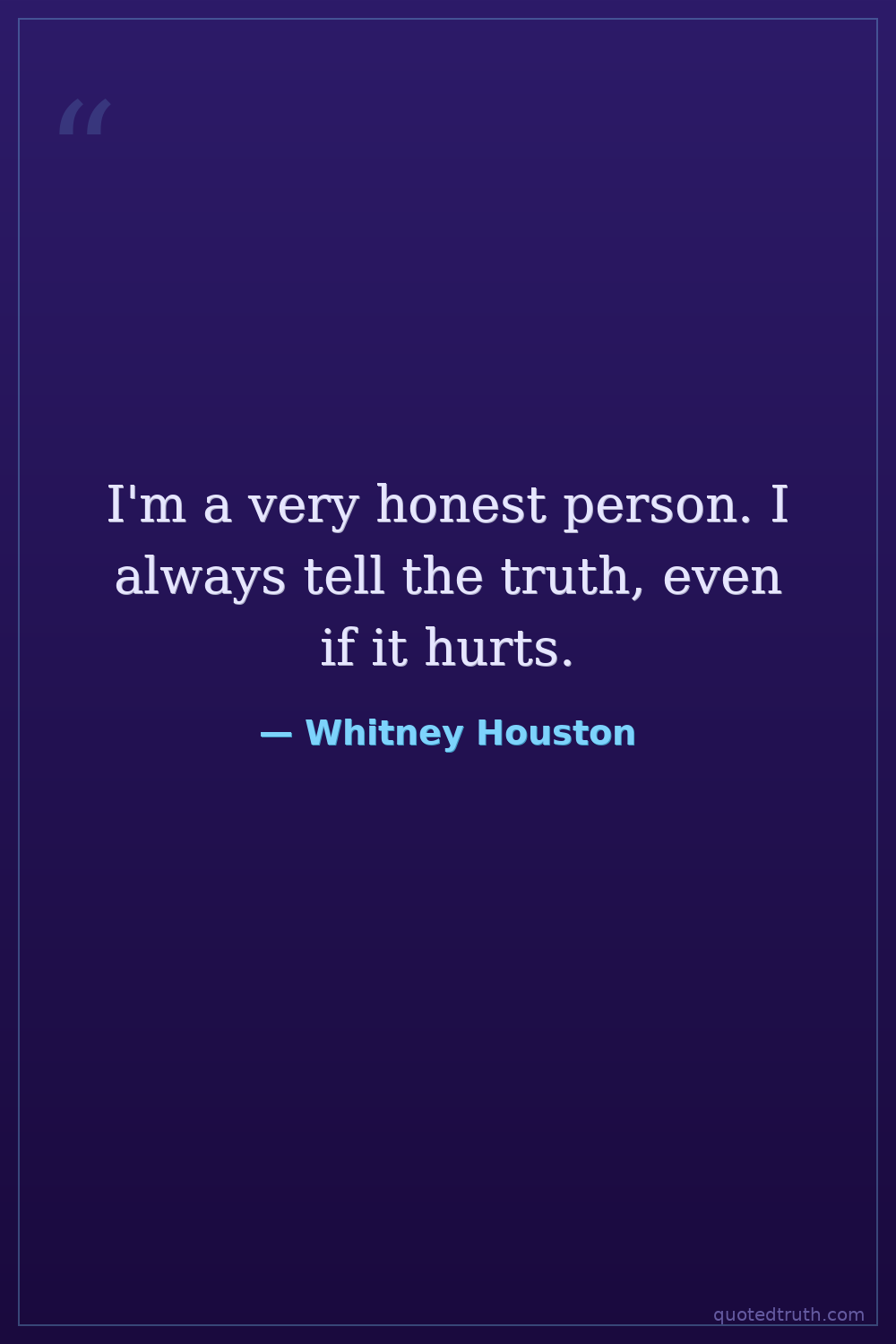 I'm a very honest person. I always tell the truth, even if it hurts.