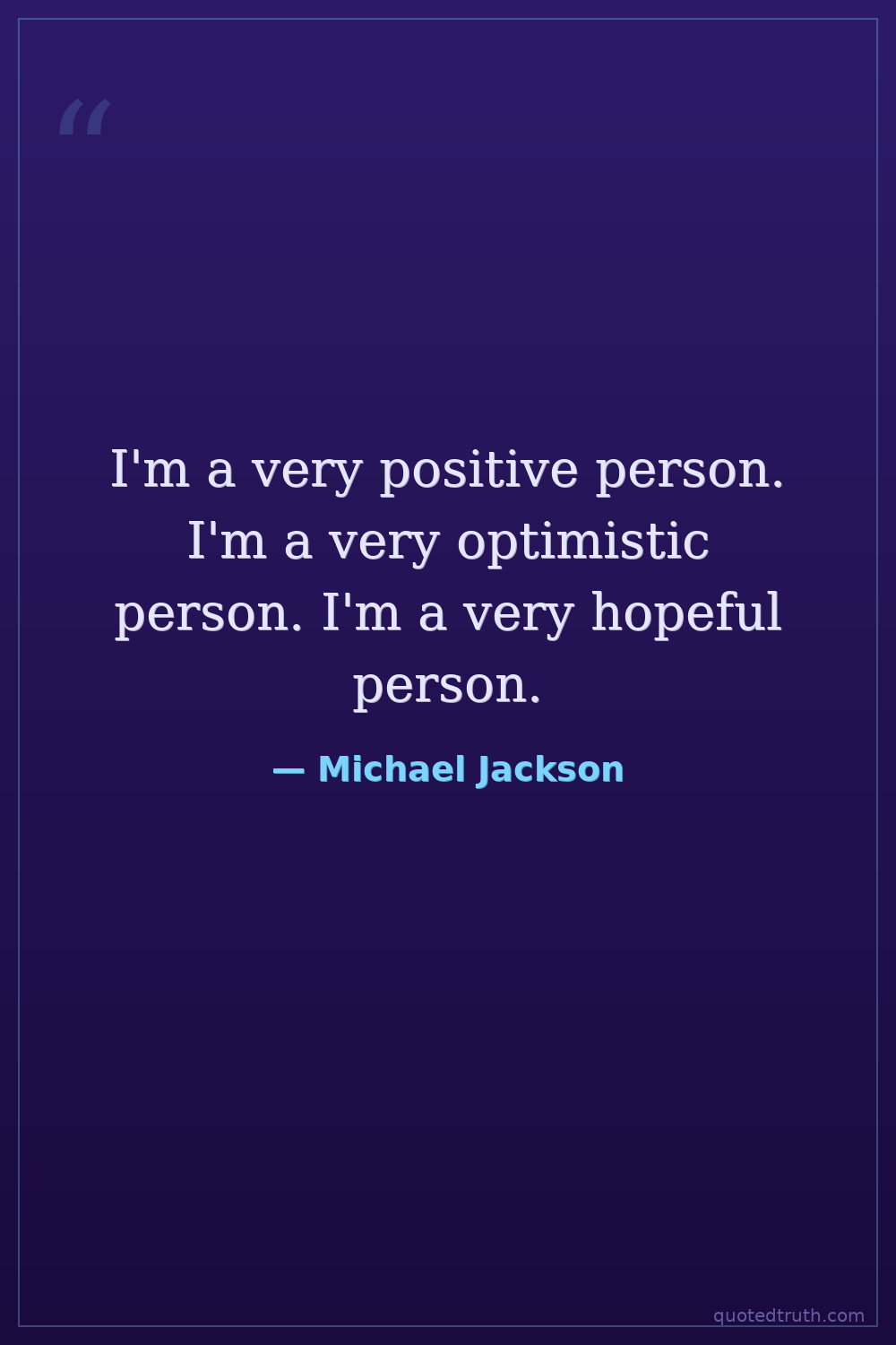 I'm a very positive person. I'm a very optimistic person. I'm a very hopeful person.