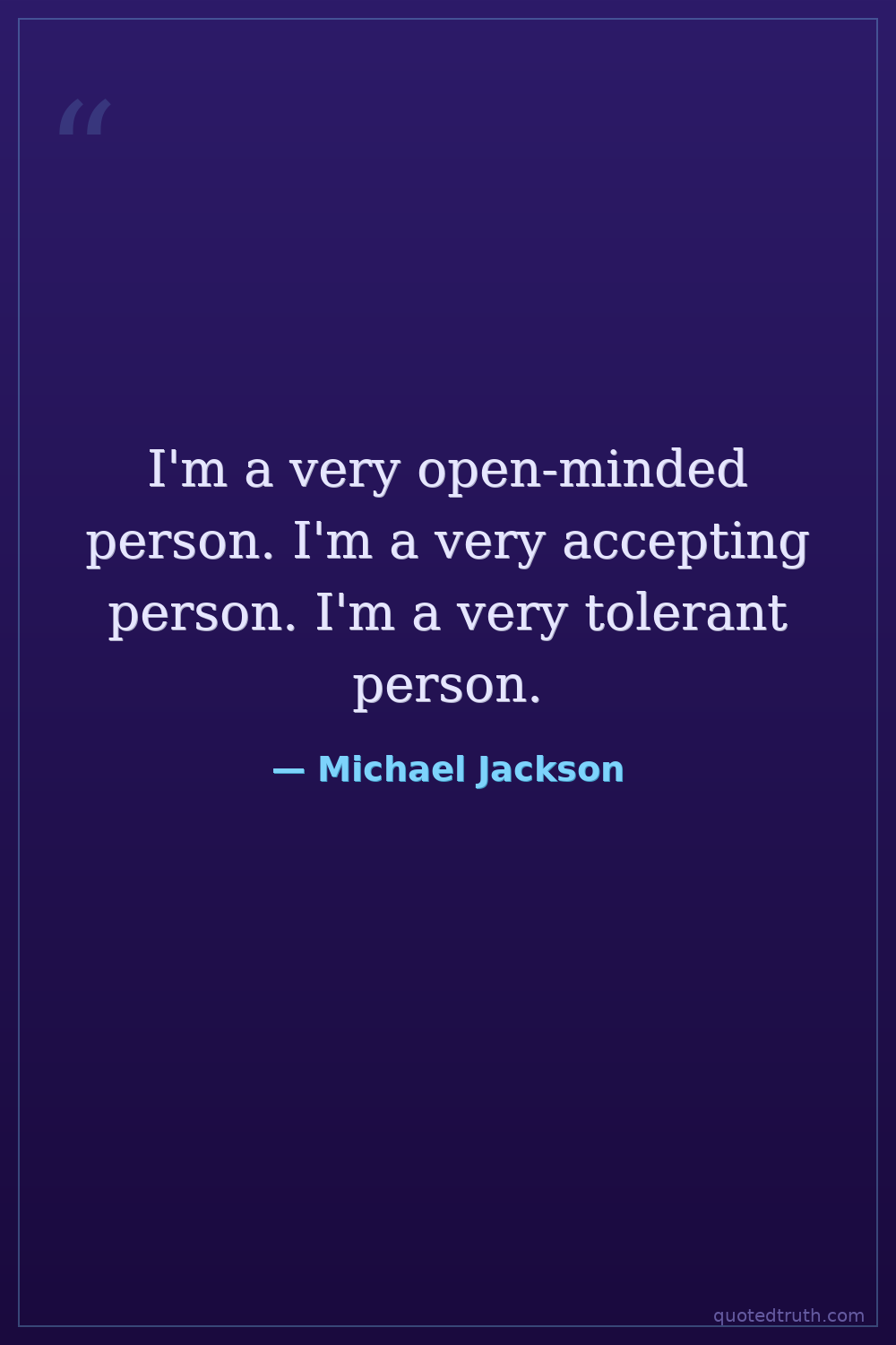 I'm a very open-minded person. I'm a very accepting person. I'm a very tolerant person.