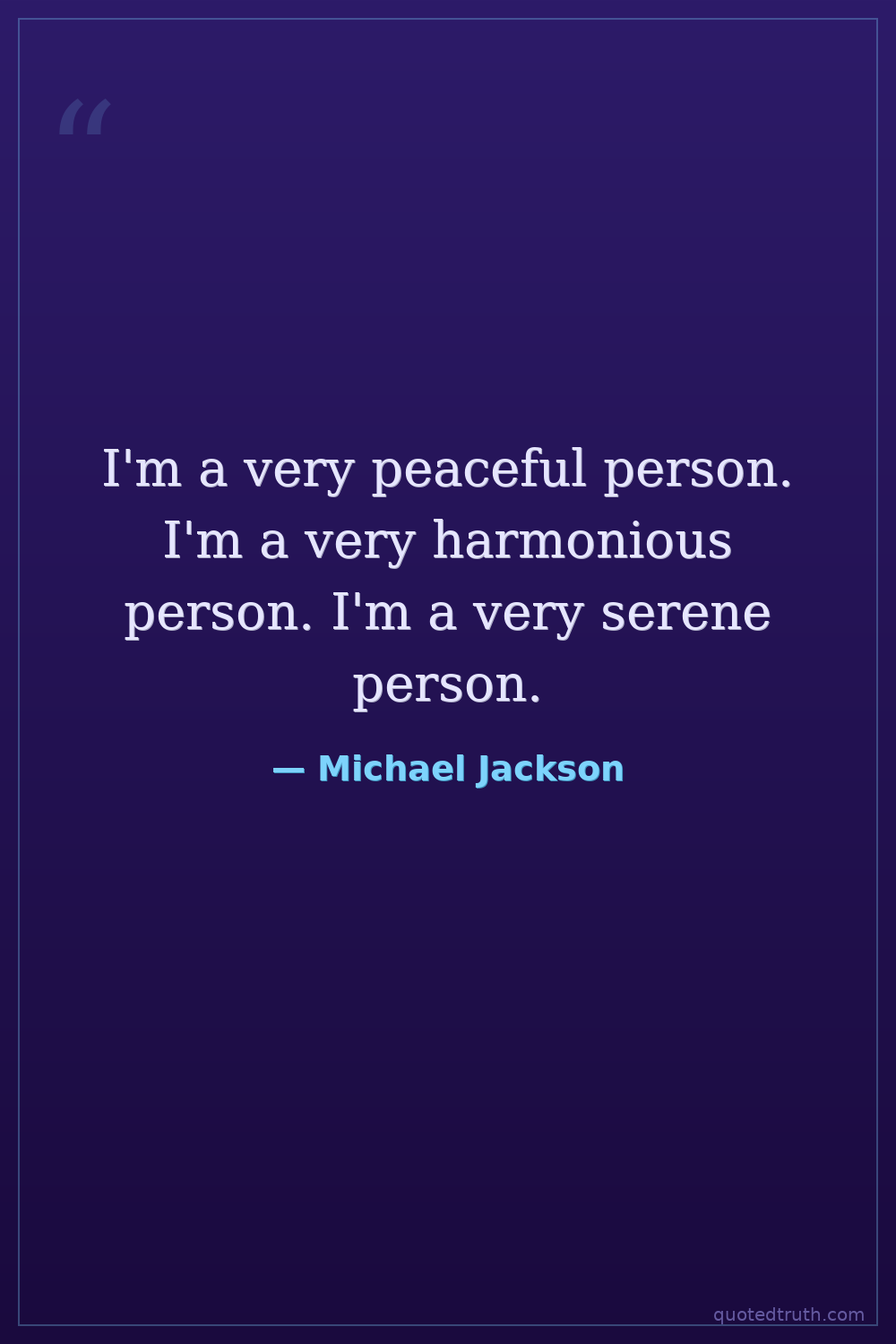 I'm a very peaceful person. I'm a very harmonious person. I'm a very serene person.