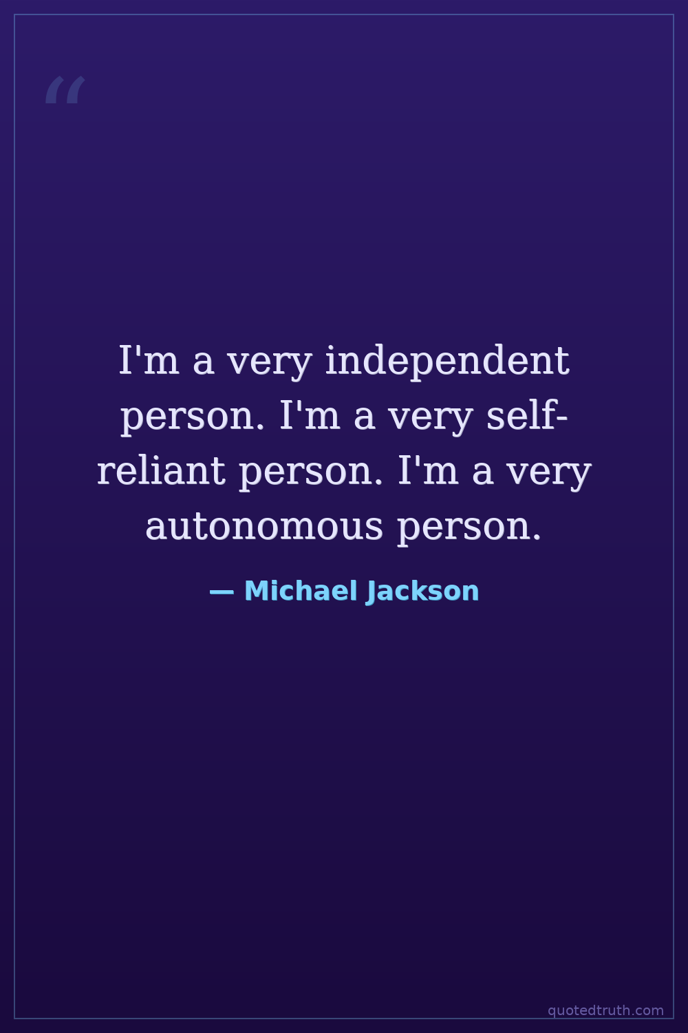I'm a very independent person. I'm a very self-reliant person. I'm a very autonomous person.