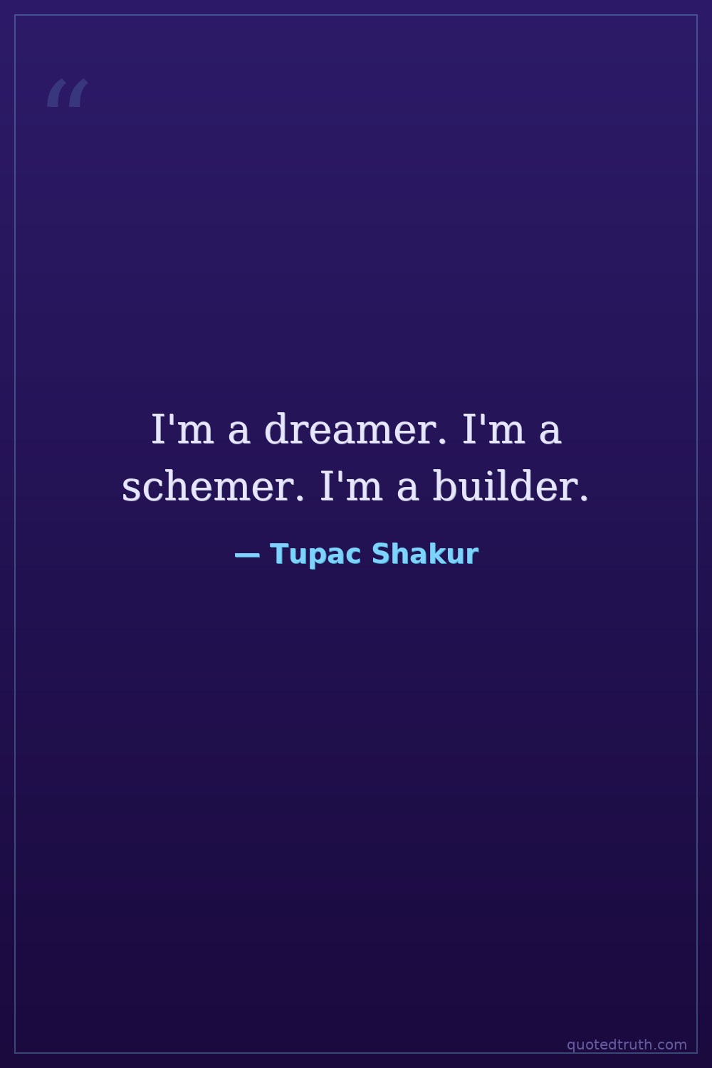 I'm a dreamer. I'm a schemer. I'm a builder.