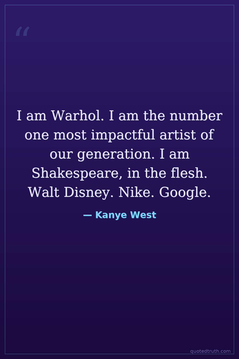 I am Warhol. I am the number one most impactful artist of our generation. I am Shakespeare, in the flesh. Walt Disney. Nike. Google.