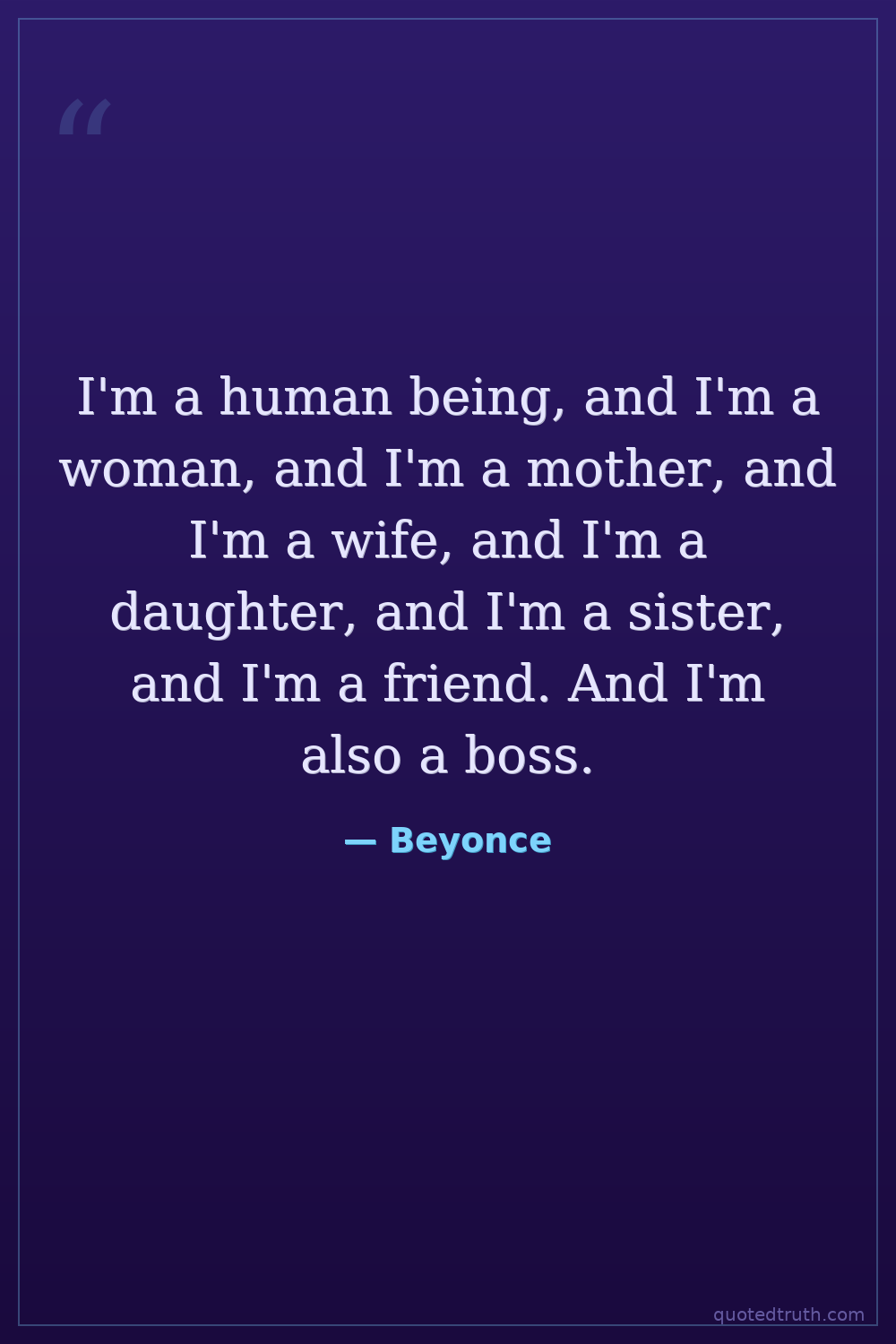 I'm a human being, and I'm a woman, and I'm a mother, and I'm a wife, and I'm a daughter, and I'm a sister, and I'm a friend. And I'm also a boss.