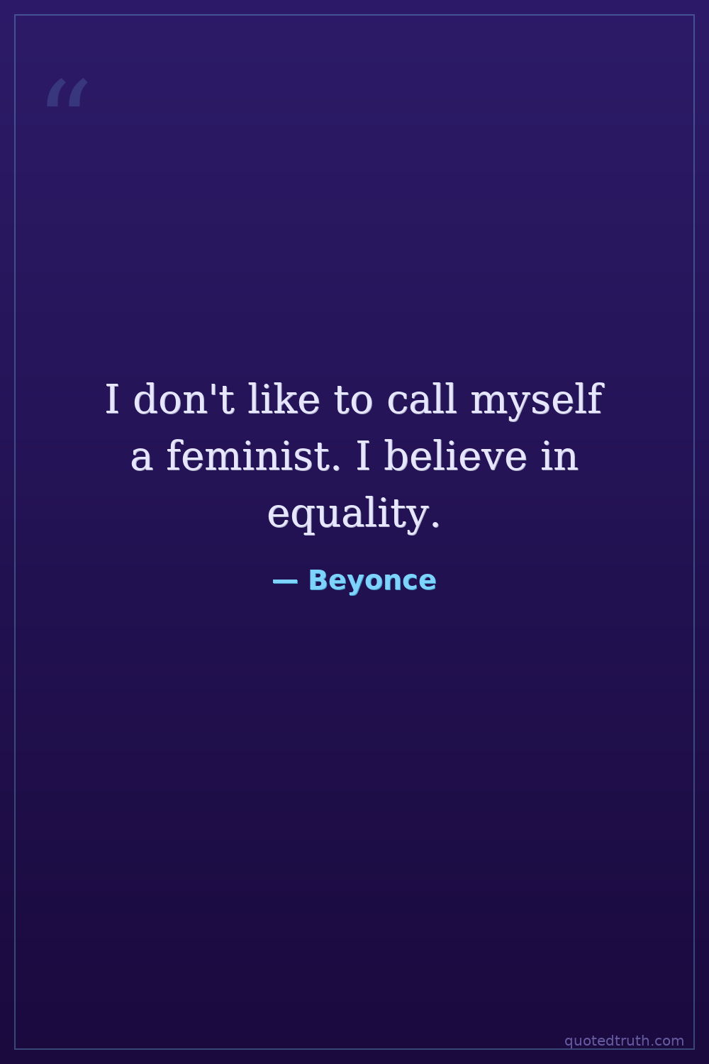 I don't like to call myself a feminist. I believe in equality.