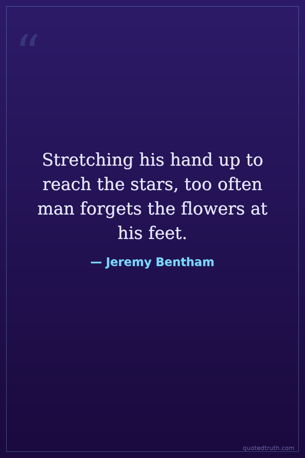 Stretching his hand up to reach the stars, too often man forgets the flowers at his feet.