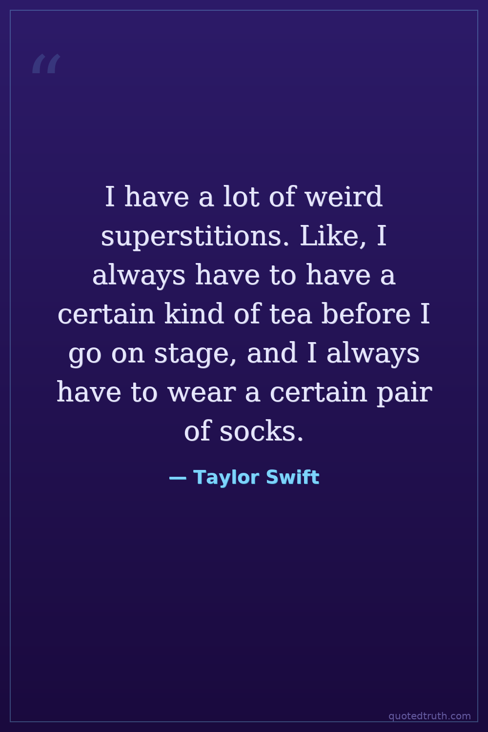 I have a lot of weird superstitions. Like, I always have to have a certain kind of tea before I go on stage, and I always have to wear a certain pair of socks.