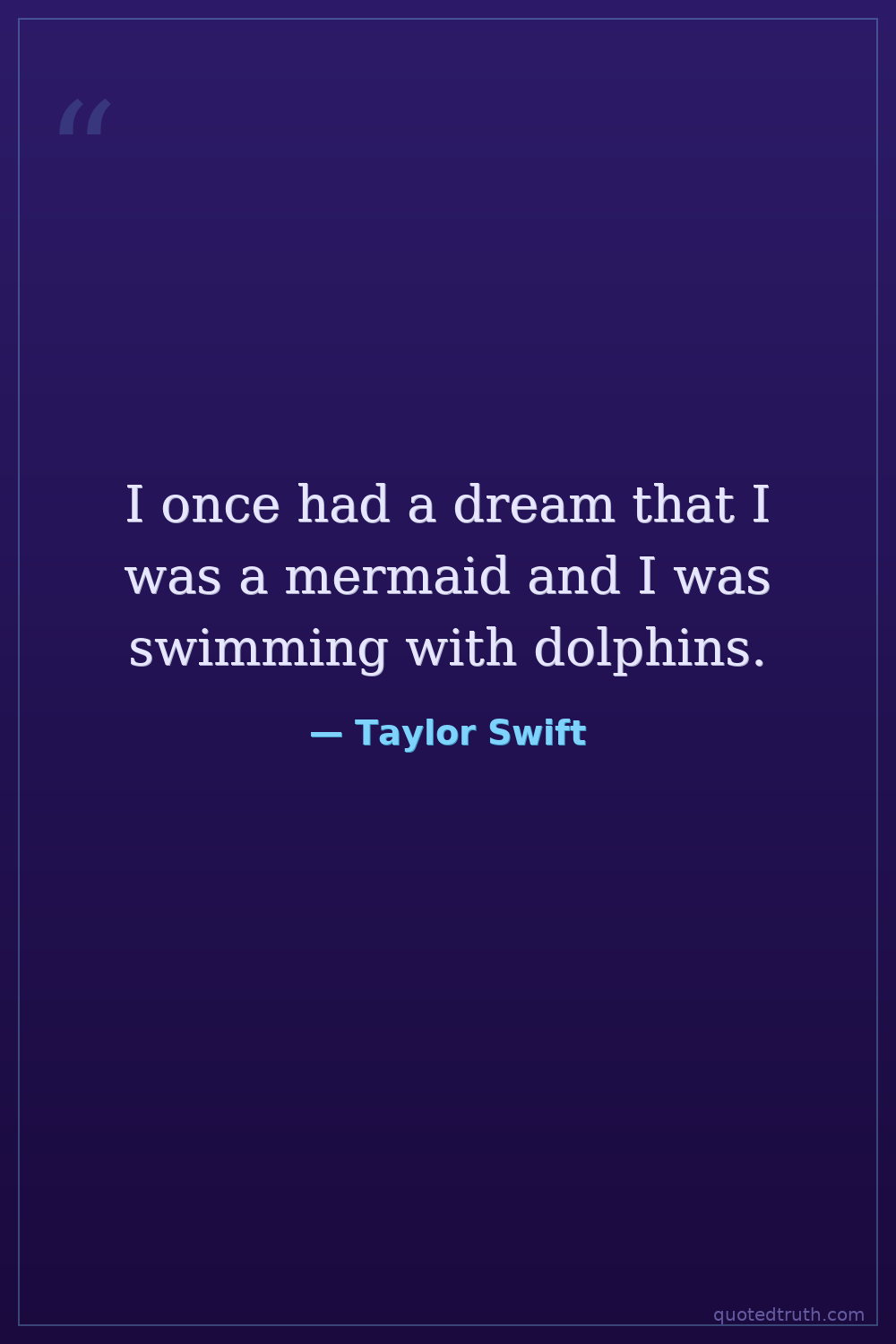 I once had a dream that I was a mermaid and I was swimming with dolphins.