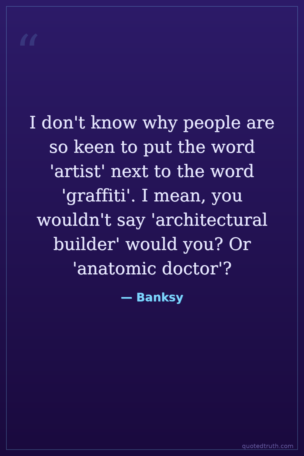 I don't know why people are so keen to put the word 'artist' next to the word 'graffiti'. I mean, you wouldn't say 'architectural builder' would you? Or 'anatomic doctor'?