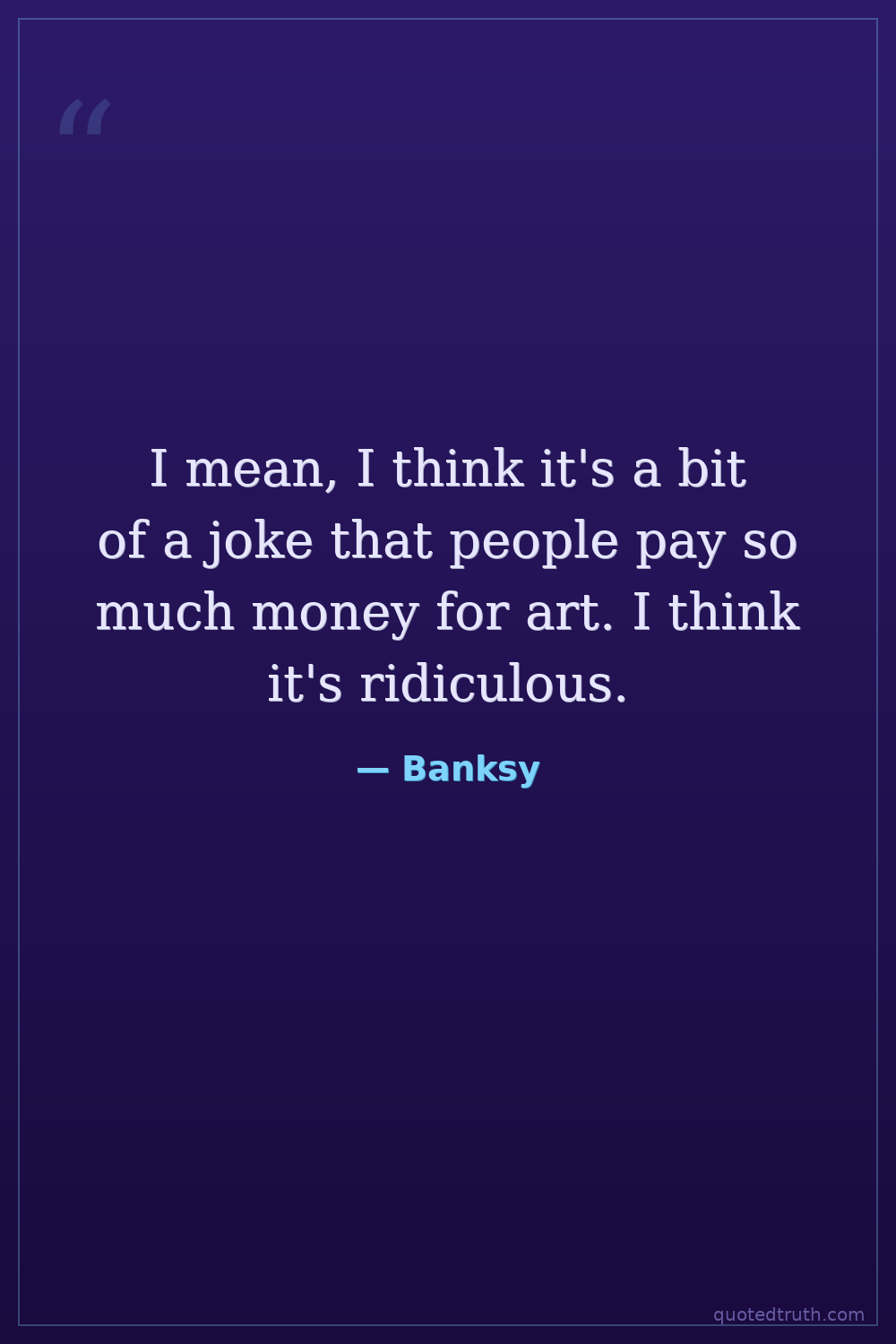 I mean, I think it's a bit of a joke that people pay so much money for art. I think it's ridiculous.