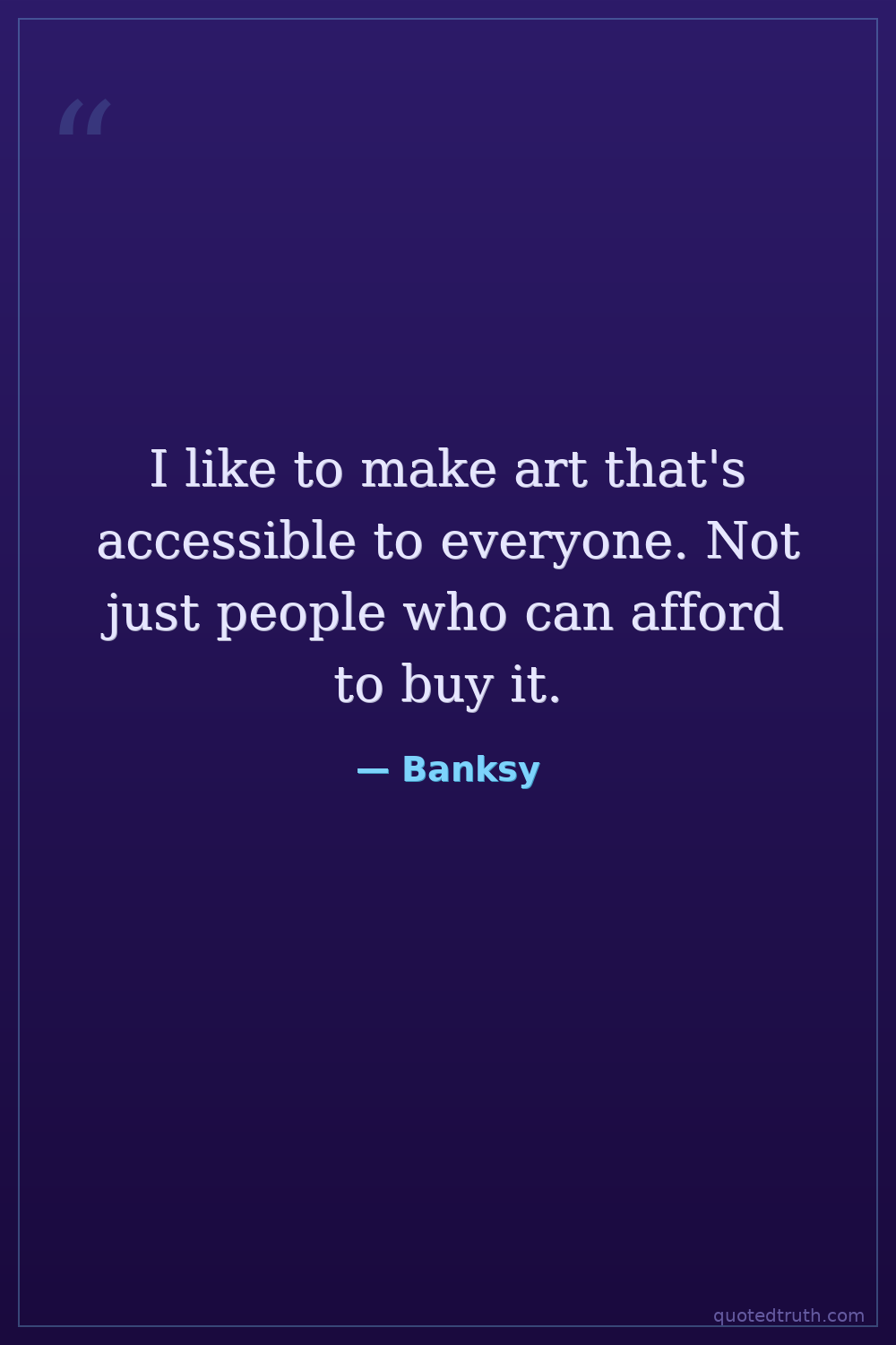 I like to make art that's accessible to everyone. Not just people who can afford to buy it.