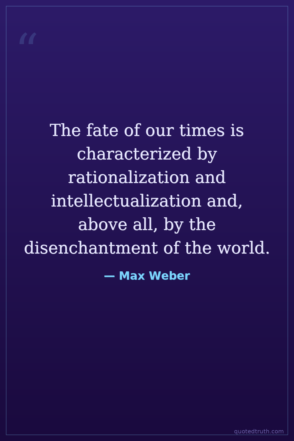 The fate of our times is characterized by rationalization and intellectualization and, above all, by the disenchantment of the world.