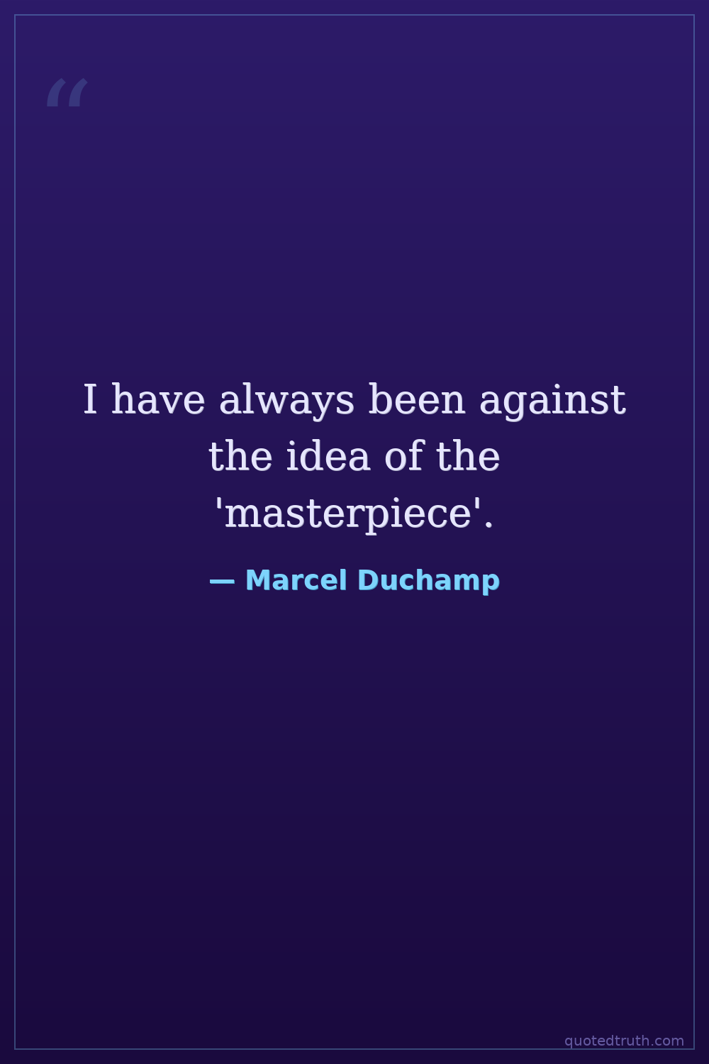 I have always been against the idea of the 'masterpiece'.
