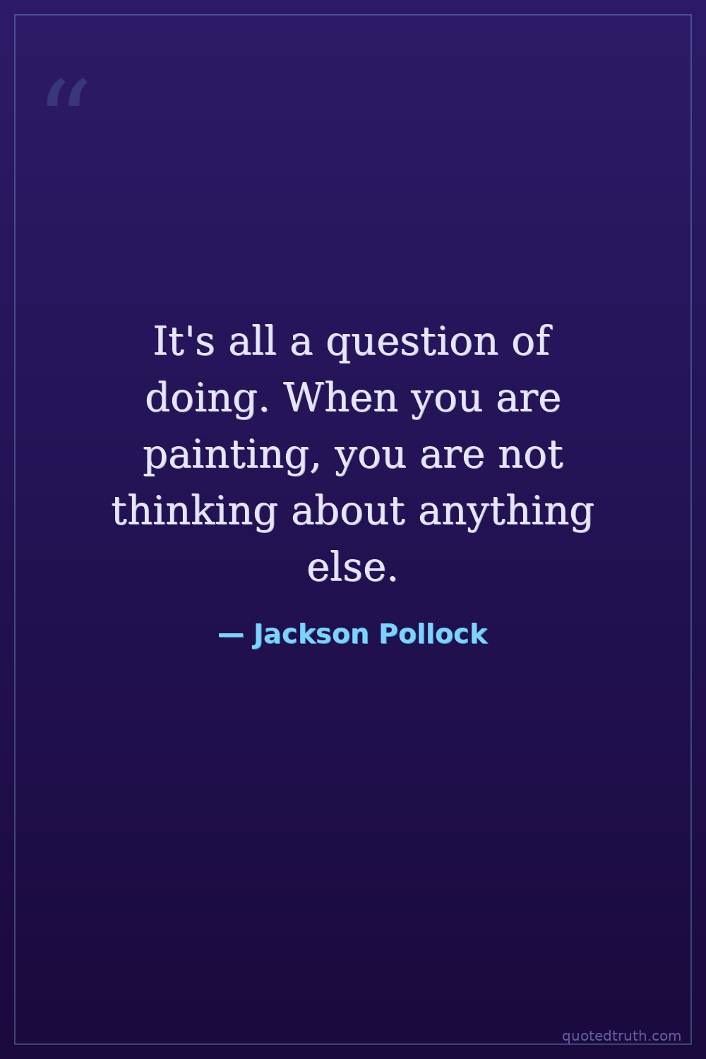 It's all a question of doing. When you are painting, you are not thinking about anything else.